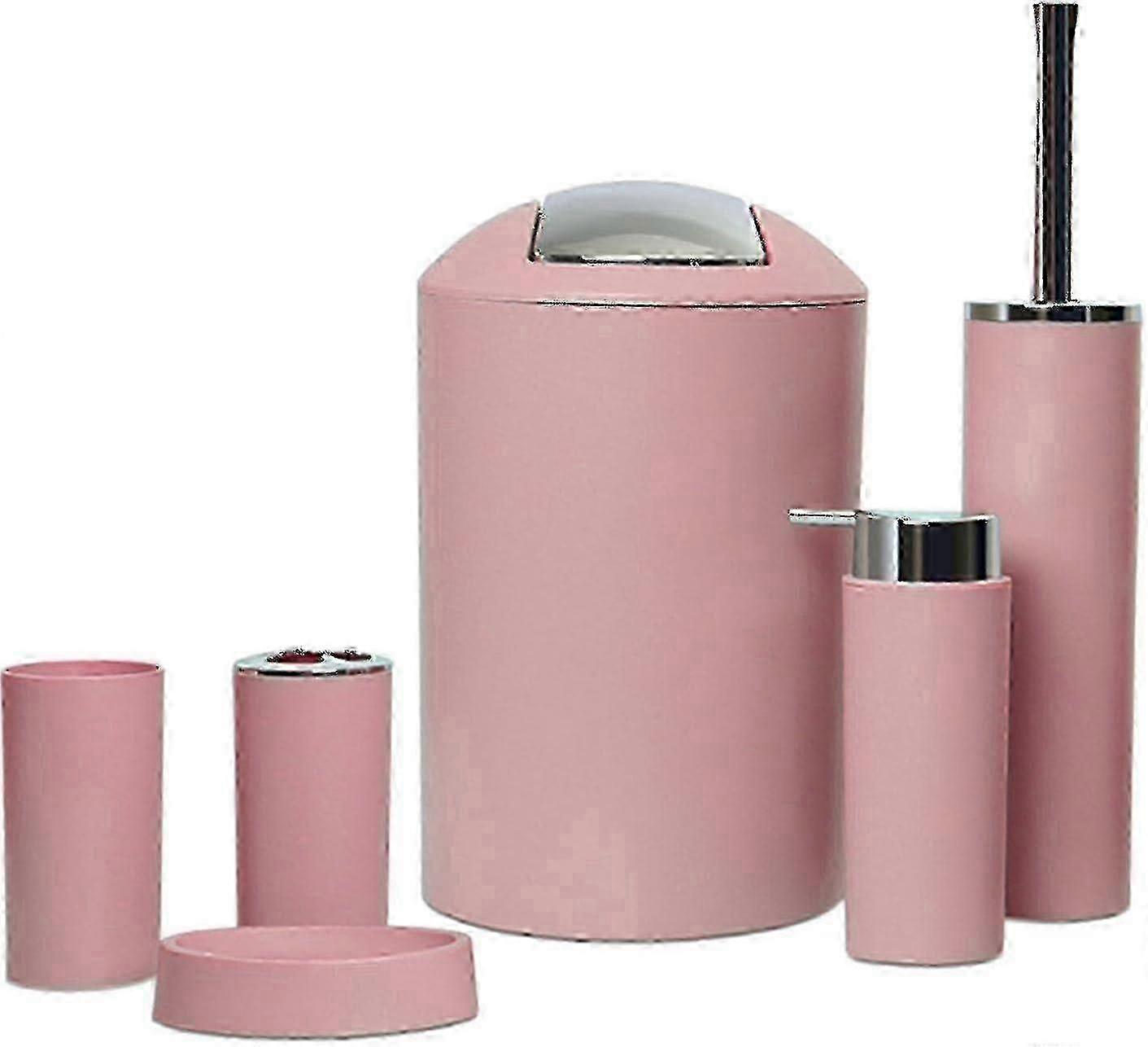 6x 6 Piece Bathroom Accessory Set, Toilet Brush, Waste Bin, Soap Dish, Brush Holder Soap Dispenser, Rinse Cup, Pink