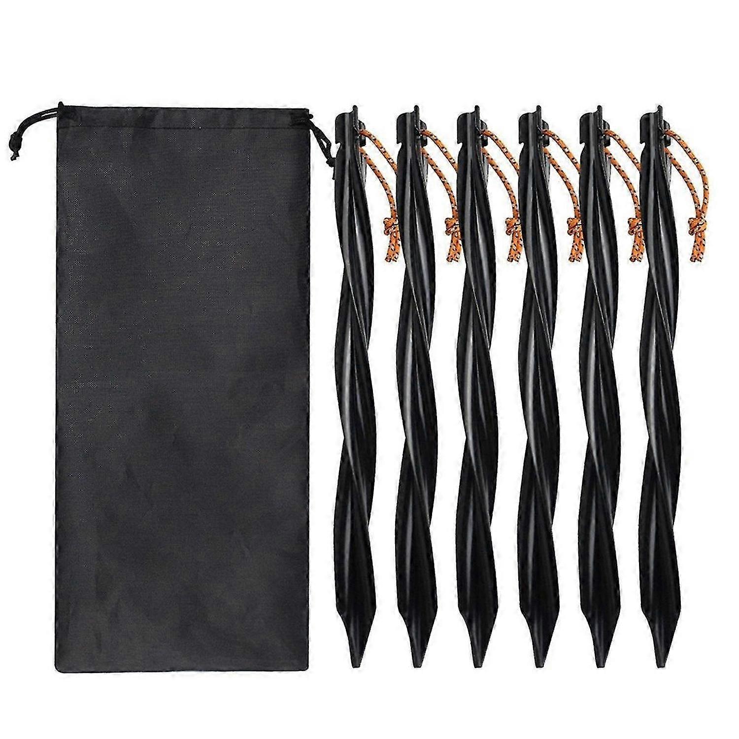 6X 25cm Outdoor Tent Pegs Ground Nails with Storage Bag Windproof Nails Camping Accessories Tent Fastening Black