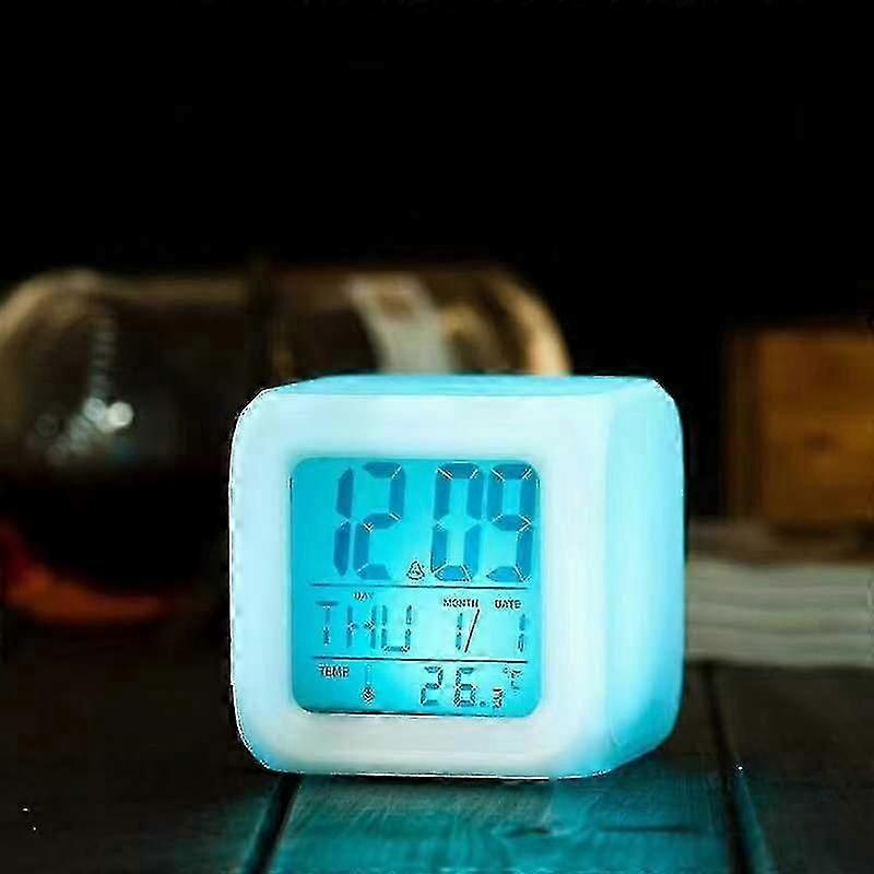 7 Led Colors Changing Digital Alarm Clock Desk Gadget Digital Alarm Thermometer Night Glowing Cube Lcd Clock For Home Decoration