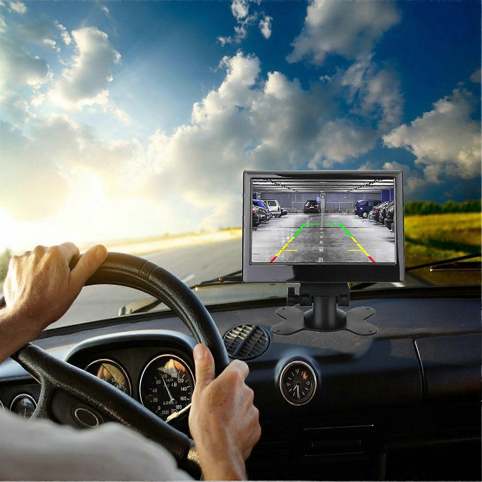 7in Car Reversing Monitor 12 to 24V 170 Degree Wide Angle Color LCD HD Two Way Video Input for Truck Trailer Van Vehicles 8LED Light Camera