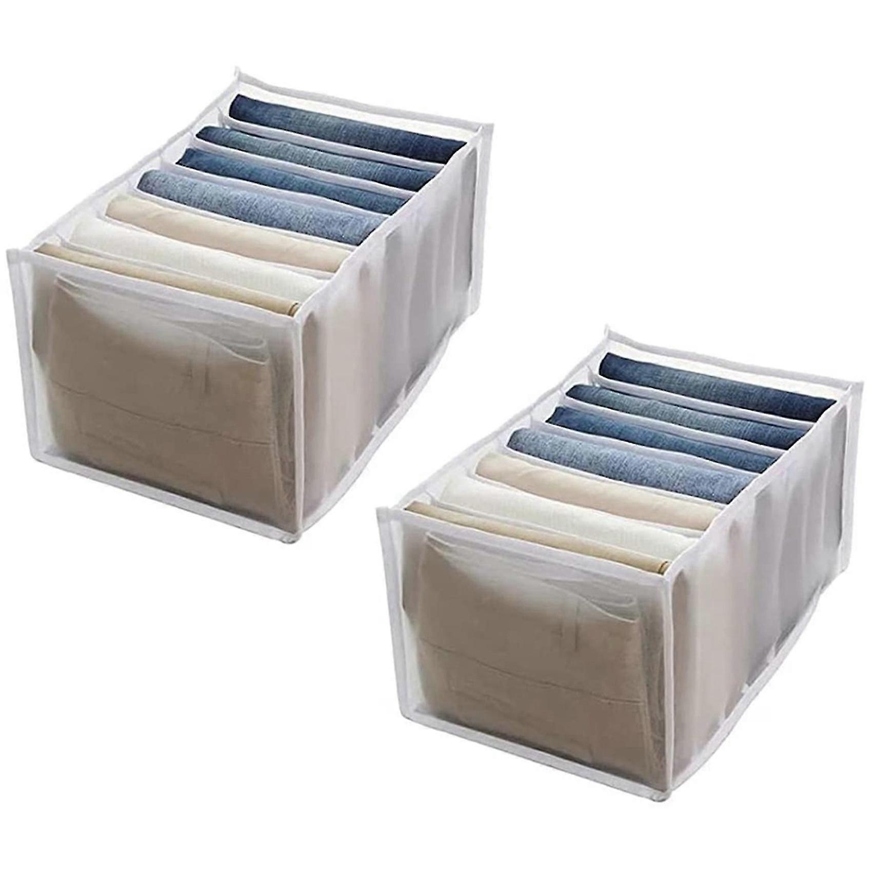 7 Grids Washable Wardrobe Clothes Organizer,Jeans Compartment Storage Box Foldable Closet Drawer Or