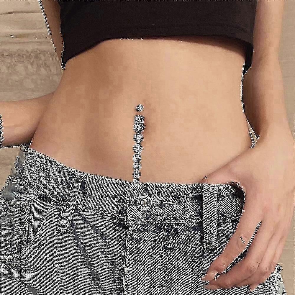 7 Heart Crystals Long Dangled Belly Button Rings Surgical Steel Cute Navel Piercing Nombril 14g Cuved Bar Body Piercings Jewelry Tw