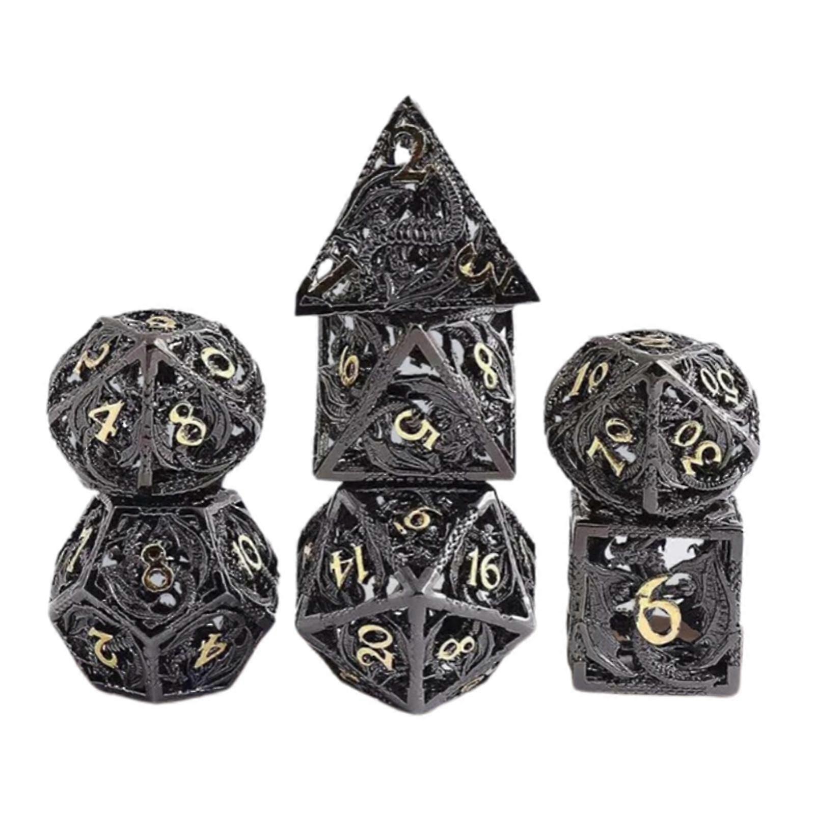 7pcs Dragon Dungeon Hollow-carved Design Metal Polyhedral Dice Tabletop Game Ancient bronze