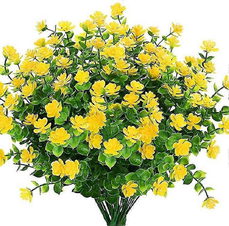 1. Lifelike Artificial Flower: Each bundle of eucalyptus gives the appearance of a real, natural flower. The 7 bundles artificial eucalyptus will bring the lush beauty of nature into your life and create a cozy ambiances to warm your heart. 2. UV Resistant Flower: Plastic flowers are uv resistant and never fade, upscale look artificial flowers are perfect for any landscaping project or decor style. This silk bushes will never die off and can resist fierce wind, rainstorm and insolation. 3. Care Free: Enjoy the long-lasting beauty of the lifelike eucalyptus without having to worry about sunlight, watering, pruning or other maintenance; these faux eucalyptus are forever fresh wherever you choose to display them. 4. Size: Each bouquet has flexible stems and bushy leaves but no annoying powder. Each measures 13.4 inch high. Each parcel includes 7 bundles faux eucalyptus plants. This is a cost-effective product. They are beautiful and well made. 5. Pretty Fake Flowers for Decor: This artificial flowers are designed for outdoor indoors decoration. These lifelike eucalyptus lend gorgeous charm to your front porch, walkway, patio, and garden; faux eucalyptus are perfect for everyday decoration, birthdays, holidays, weddings, memorial sites, DIY projects, etc. Specification Material: Plastic Color: Yellow Size: 37 x 16.5 cm Weight: 42 g/1pc Package Include: 8x Artificial Flower