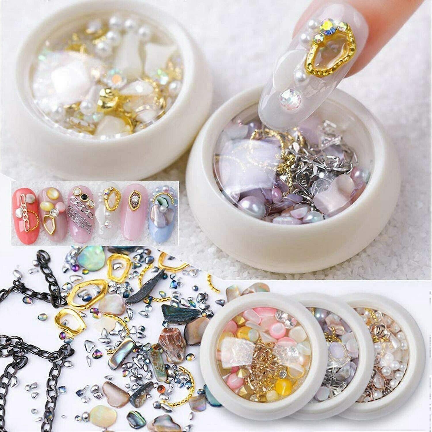 7 Boxes 3D Nail Art Rhinestones Decoration Set Nail Drill Manicure Jewelry Mixed Nail Art Rhinestones Diamonds Crystals Big Gem Nail Jewels Decoration
