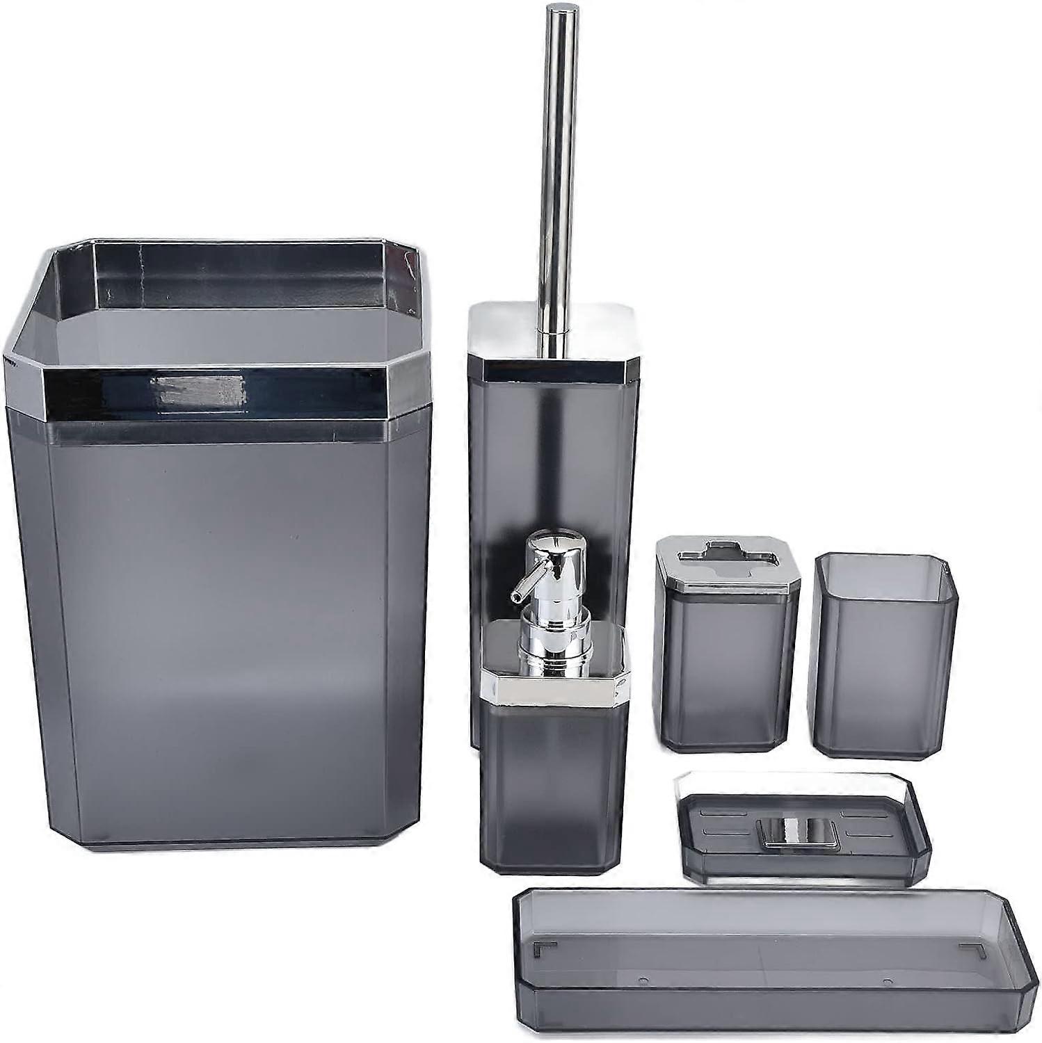 7Pcs One Set: A set contains 7 bathroom accessories, including toothbrush holder, toothbrush cup, soap tray, toilet brush holder, trash can, Soap Dispenser, you will get everything you need for the bathroom.