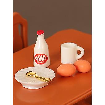 7Pcs/Set Dollhouse Milk Egg Tableware Set Dollhouse Mini Breakfast Food Decor