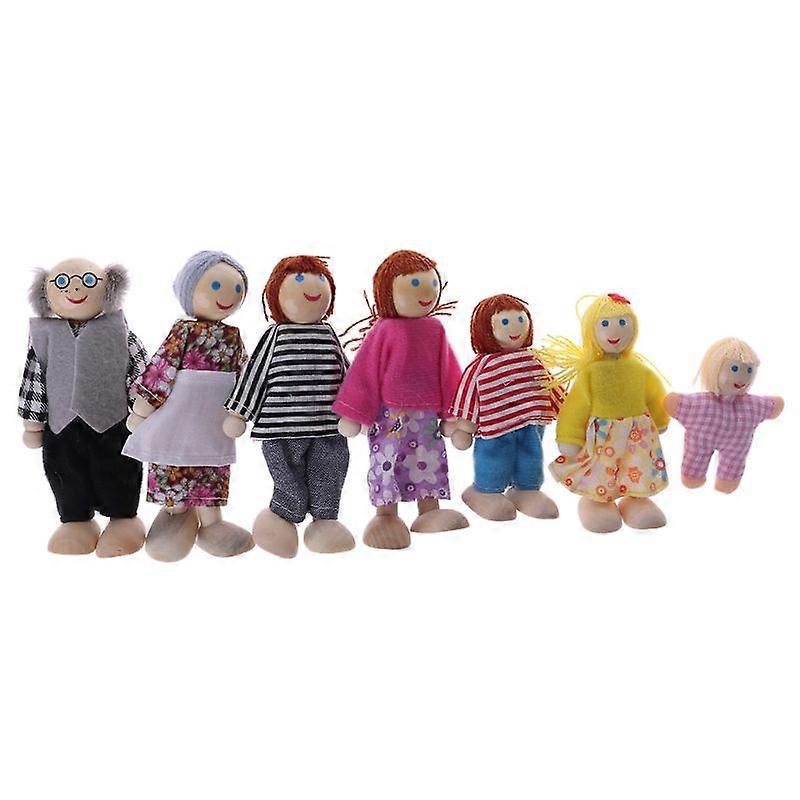 7pcs/set Happy House Family Dolls Wooden Figures Characters Dressed Kids Girls L