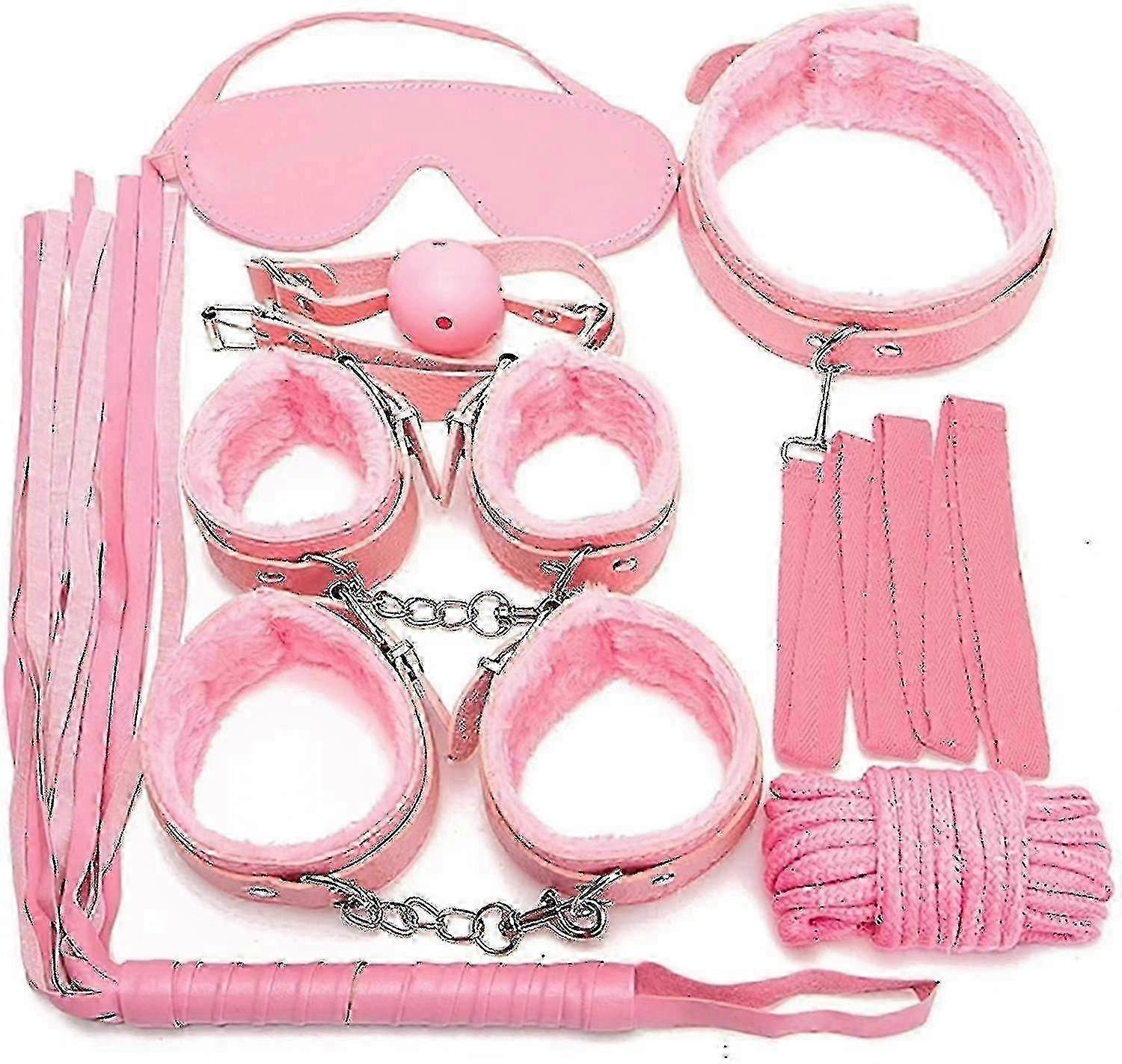 7pcs/set Leather Bodaged Kit Adlt Explay Hndcffs/whps/ball Gg/rope/collr Bdm