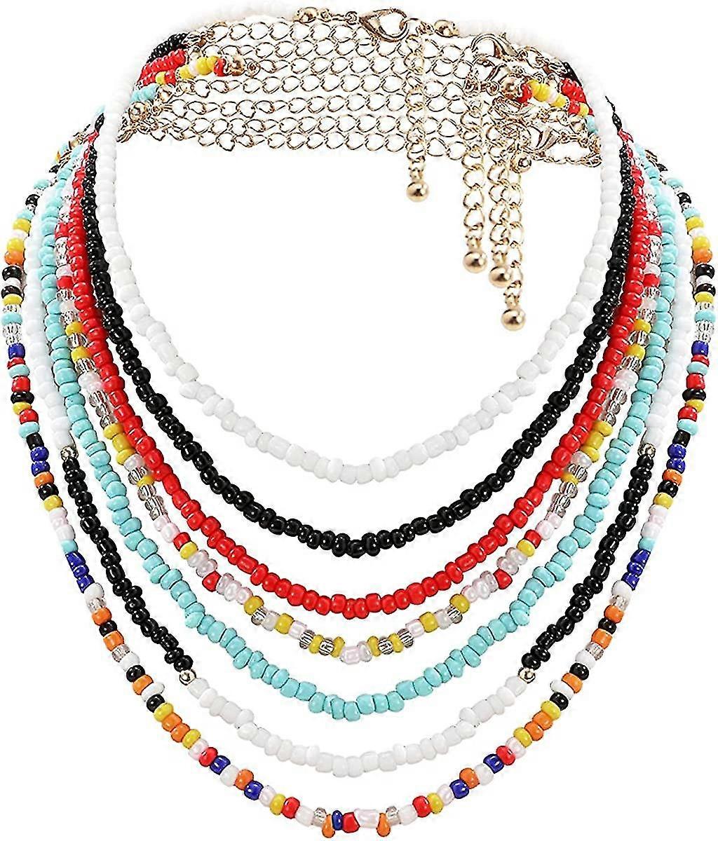 7 Pcs Boho Colorful Beaded Choker Necklaces For Women Teen Girls Sweet Cute Handmade Seed Bead Choker Jewelry Set - -