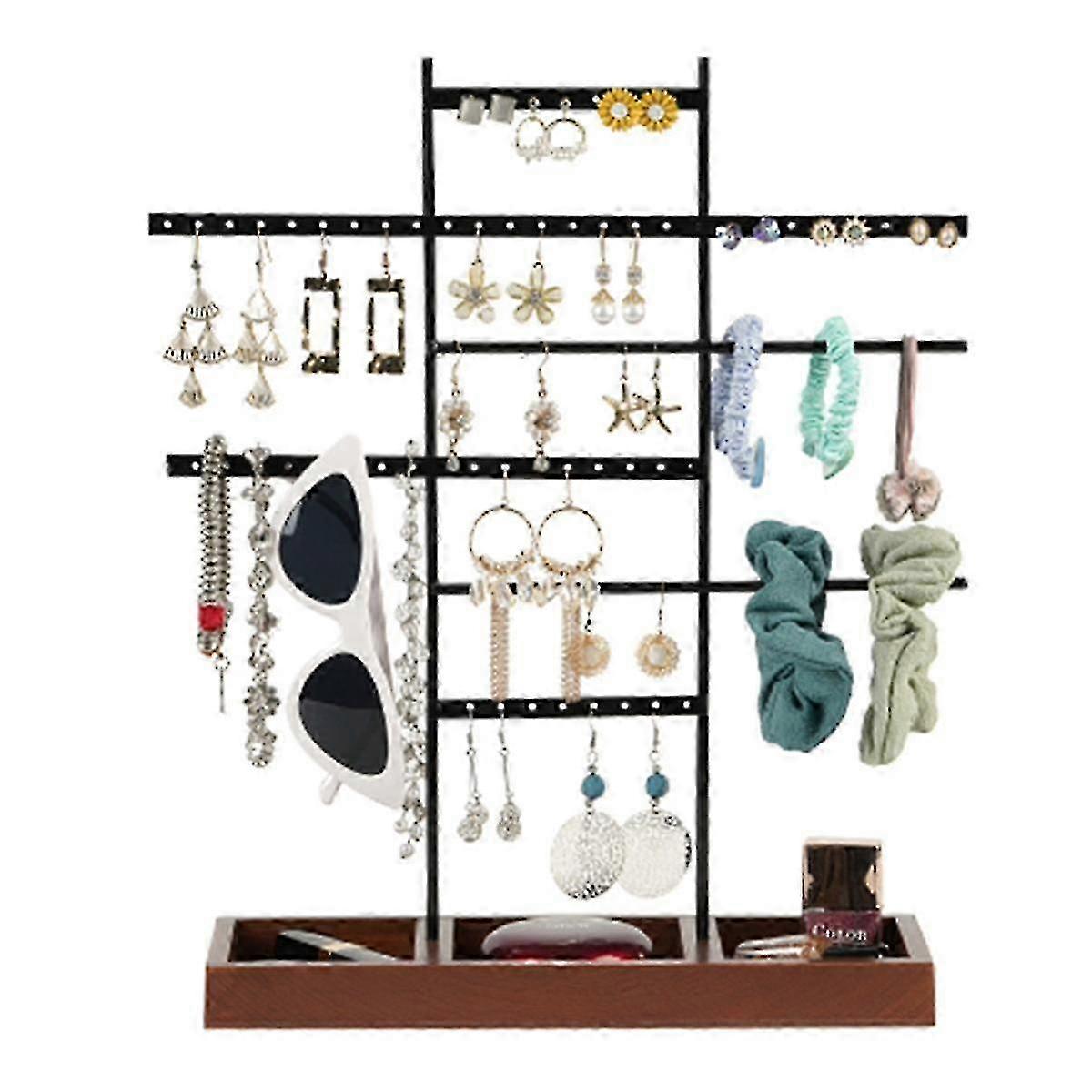 7-Layer Large Earring Jewelry Stand Solid Wood Base Bracelet Necklace Display Stand Rings Jewelry Stand