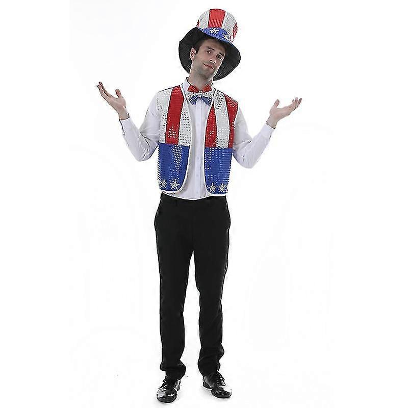 4th Of July Celebrattion Patriotic Party Sequin Uncle Sam Costume Kit For Adult American Flag Vest Hat Bowtie