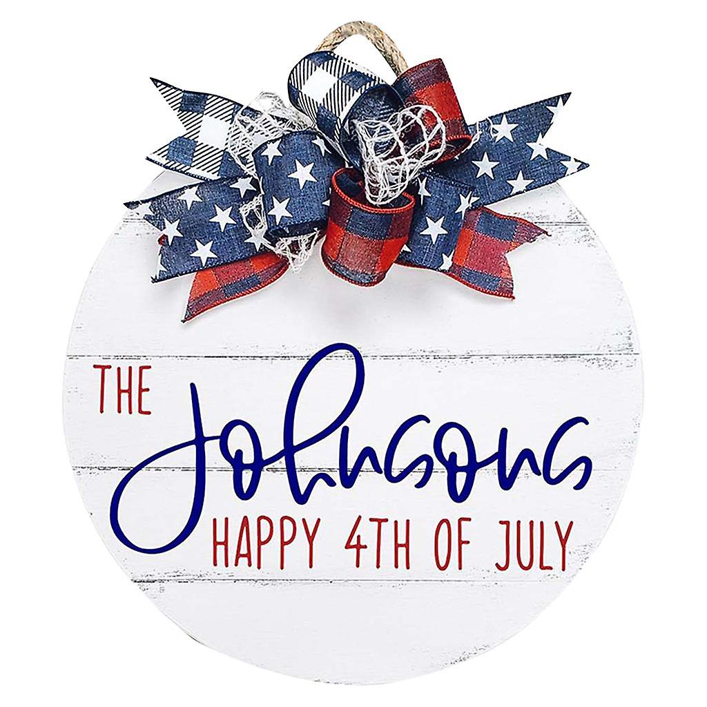 July 4th Patriotic Circular Tag Wood Sign Decorative Window Independence Day A