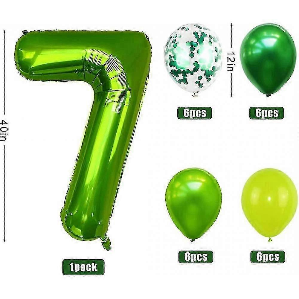 7th Birthday Decoration Set, 7 Years Children's Birthday Decoration, Green Balloons Safari Animal Foil Balloons For Nursery Decoration Jungle MLO