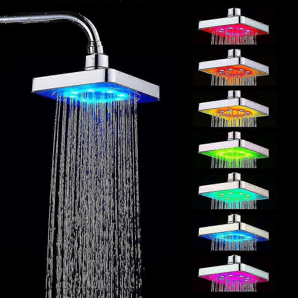 7 Colors Led Romantic Light Water Home Bathroom Shower Light Shower Head No Batteries Needed, Colour Changing Square Led Shower