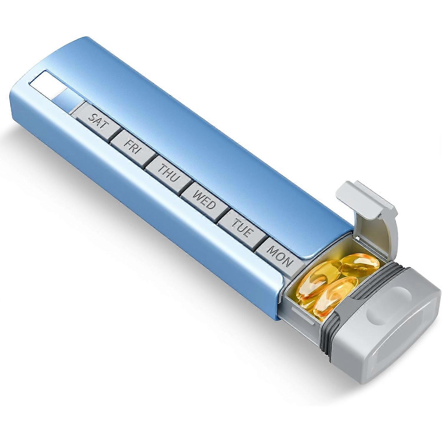 7 - Day Weekly Pill Organizer Daily Premium Aluminum Alloy Case, Portable Metal Holder for Medications & Supplementsblue
