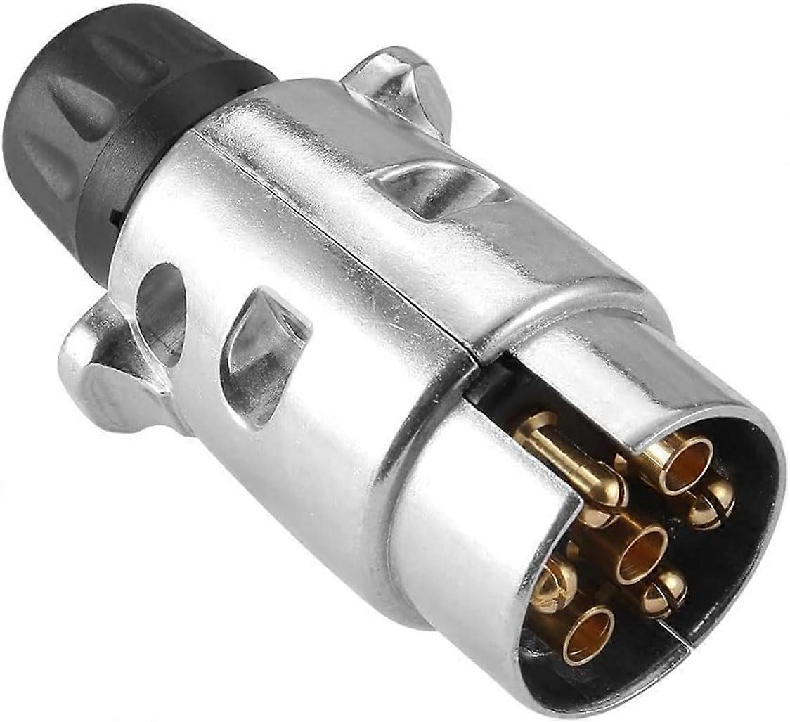 7 Pin Metal Towbar Socket 12V 7 Pin Metal Trailer Plug Pin Metal Male Trailer Plug 7 Pin Waterproof Electrical Connector for Trailer <p>Product Material: The 7-pin towing socket uses durable aluminum metal housing and brass pin terminals, providing an efficient and firm connection between your vehicles, making your driving and towing safer.</p> <p>Easy to Use: Compared with other products using flat terminal, our trailer plug has a user-friendly design of screw terminal versions, which are mainly for aftermarket replacement, much easier for customers to use.</p> <p>Applications: The trailer plug is used for electrical connections between the vehicle and the trailer or caravan, transferring the light signal from the car/vehicle to the trailer. Suitable for trailers, caravans, towbar, bike racks, tractor, motorhome.</p>