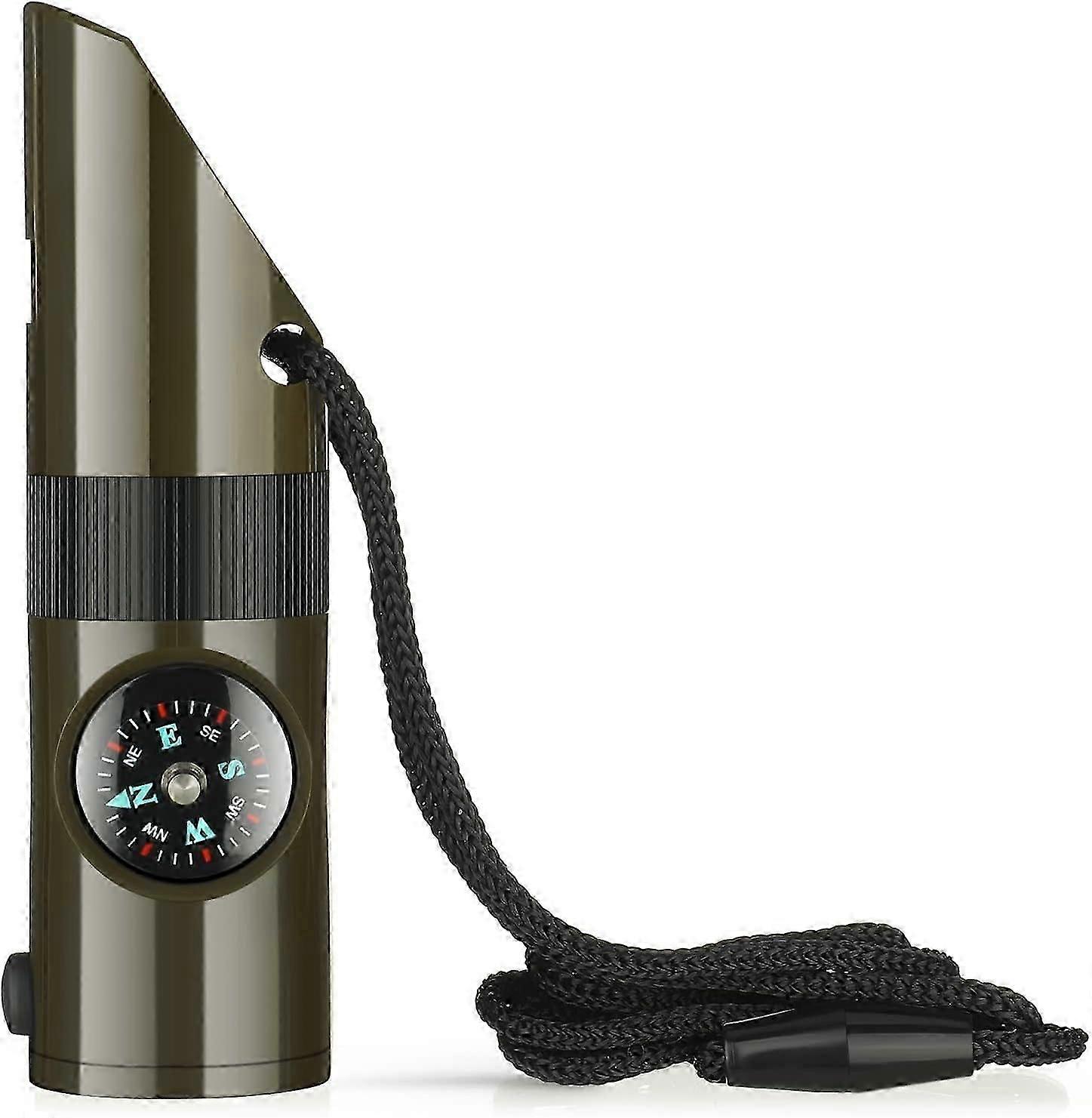 7 in 1 Camping Survival Tool Emergency Whistle Compass Thermometer LED Flashlight with Lanyard Child Safety Kit Outdoor Multi-Tool for Camping Hiking