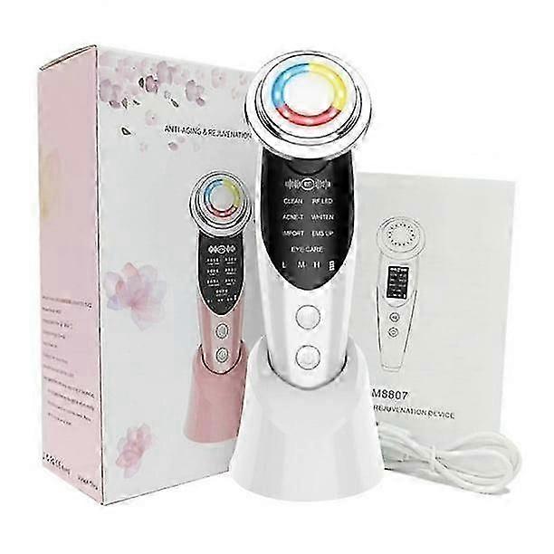 7 in 1 Face Massager RF EMS Mesotherapy Electroporation lifting Beauty Device LED Skin Rejuvenation Remover Wrinkle, White