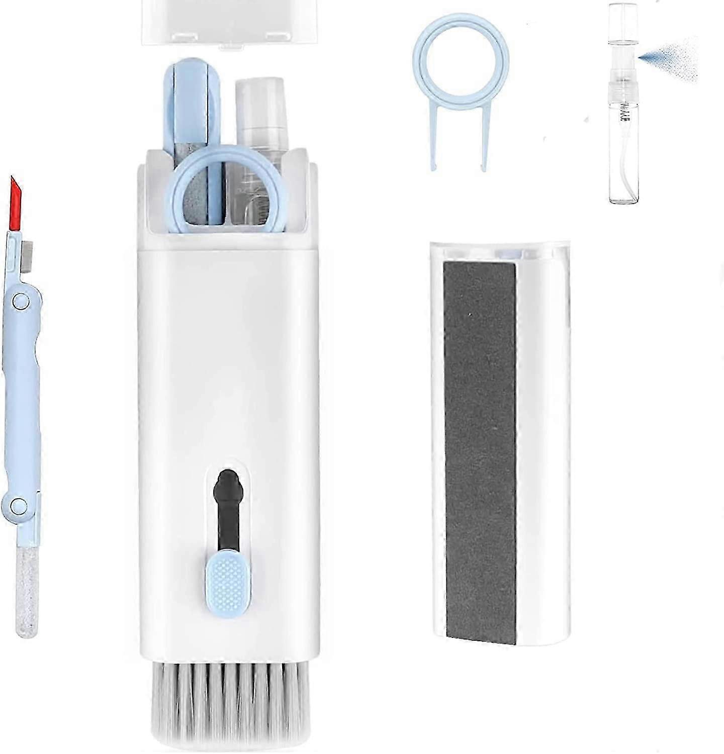 Multifunctional Cleaning Set7-in-1 electronic cleaning set includes various tools: high-density soft brush, Airpods cleaning pen with silicone clip, mini brush and flocking sponge brush; cleaning spray bottle (no cleaning liquid), fiber fleece Brush and keycap snaps. These tools can clean headphones, keyboards, cell phones, laptops, PC monitors and more. 3-in-1 Cleaning PenThe foldable cleaning pen is perfect for cleaning bluetooth earphones. The silicone clip can clean the dust and dirt hidden between cracks and holes, the mini brush can clean the surface of the earphone mesh, and the flocking sponge brush is used to clean the charging box and dirt that is inconvenient to clean. Using it will allow you to get clean headphones in no time. Fiber Lint Brush and Spray BottleSpray bottle (without cleaning solution) and fiber lint brush can easily remove dirt and fingerprints from cell phones, laptops, cameras and TV monitors. Fill the cleaning liquid into a spray bottle, then spray an appropriate amount of liquid on the screen, and use a fiber brush to clean the screen effectively. High-density retractable brush & keycap buckleThe high-density brush has dense and soft bristles, which is especially suitable for cleaning the dust in the gaps of keyboards and monitors. The keycap clips allow the keys to be removed for deeper cleaning (note: the keycap clips are only suitable for mechanical keyboards).