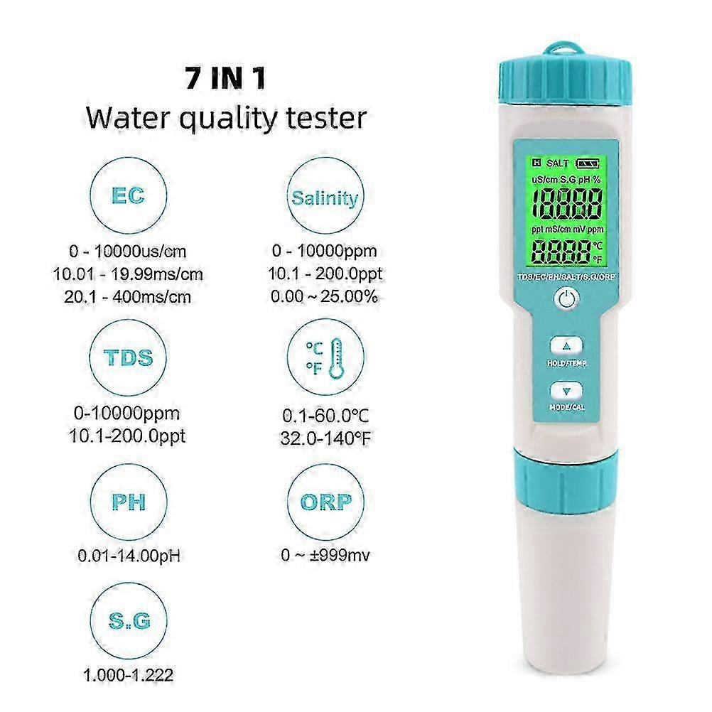 7 In 1 Ph Meter Tds Ec Orp Salinity S. G Temperature Meter With Backlight
