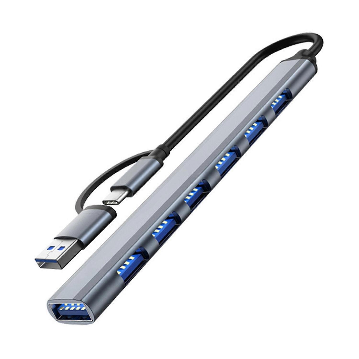 Introducing our versatile and portable Type-C multiport adapter docking station, perfect for all your computing needs on the go. Whether you're traveling or on a business trip, this lightweight adapter is designed to be your reliable companion.With its plug and play feature, you can easily use this docking station without any worries about complicated settings or drivers. It comes with an adapter that caters to both USB A-interface and USB C-interface equipment, making it universally compatible.The USB3.0 interface ensures lightning-fast transmission speeds of up to 5Gbps, while the USB2.0 interface offers speeds of up to 480Mbps. This docking station is also backward compatible with USB2.0/1.1 devices.Equipped with LED indicator lights and built-in current protection settings, this docking station effectively safeguards both your connected devices and itself from any potential damage.Compatible for Mac OS, for Windows, and other systems, this docking station is truly versatile and hassle-free. Simply plug it in and start using it right away without the need for any additional drivers.This Type-C multiport adapter docking station brings you convenience of having multiple USB ports at your fingertips wherever you go.