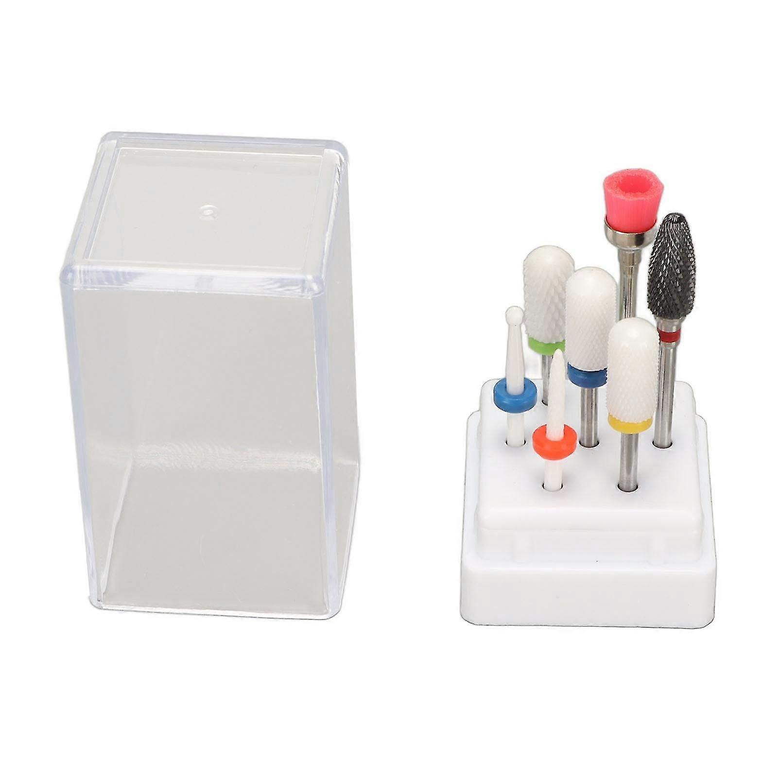 7-Piece Ceramic Nail Drill Bits Set with Cuticle Remover - Professional Salon & Home Use Kit with Storage Compartments for Beginners