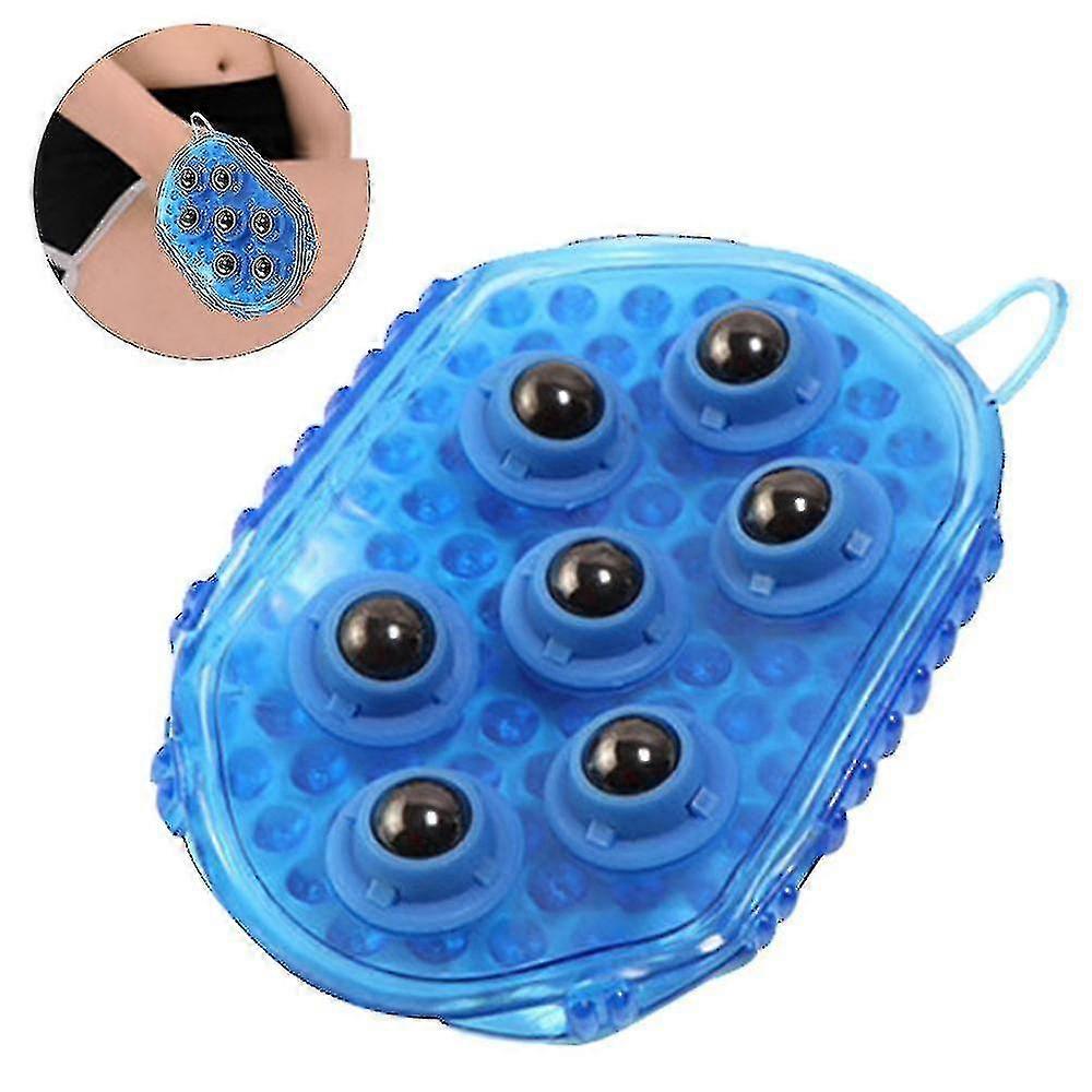 Palm Shaped Massage Glove Massage Bath Brush With 7 Metal Roller Ball