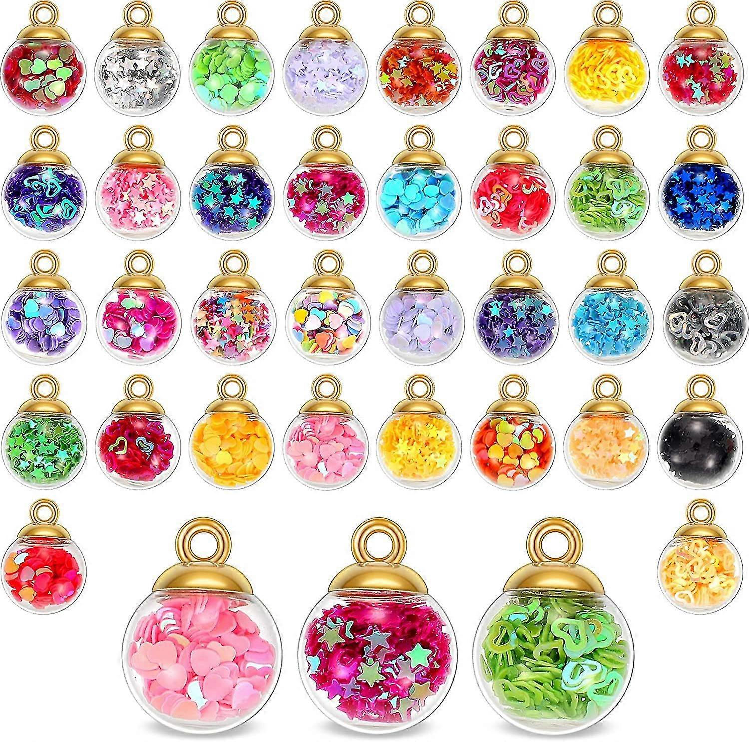 70 Pcs Colorful Glass Ball Charms Crystal Glass Ball Pendants Jewelry Making Supplies With Shining Stars, Heart-shaped Sequins And Peach Heart Sequins