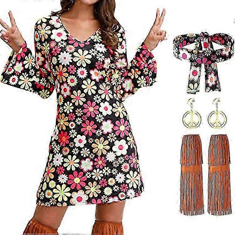 1.What Will You Get- This 70s fancy dress for women with hippie accessories set includes: 1pc hippie dress, 1 pair of pink peace sign earrings, 1pc pink peace sign necklace, 1pc flower headband, 1 pair of pink sunglasses,1pc vintage headbands. This hippie costume women set will add to your hippy look for the upcoming 60s 70s disco fancy dress theme parties.2.Typical 60s 70s Hippy Fancy Dress- This 60s fancy dress for women with the pink floral colorful patterns and wide cuffs conveys a sense of love and peace, typically representing 60 70 styles hippie clothing for women. This floral abba fancy dress costume is matched with your go go boots making you look very lively, attractive and eye-catching.Perfect for 60s 70s disco theme party.Hand Wash OnlyFastening: Pull On70s Fancy Dress Women3.Made of Soft & Stretchy Fabric- This 60s 70s disco fancy dress for women made of 100% polyester which has high elasticity and strength brings you a comfortable wearing experience. It perfectly fits for you, not tight nor itchy nor hot. Very nice 60s 70s costume for women which is suitable for casual and special occasion wearing.4.Wide Application- This 60s 70s hippie costume clothes for women can be used as various costumes such as 70s fancy dress women disco costume,60s hippy fancy dress for women,70s Halloween fancy dress for women,women Woodstock costume,festival clothes for women etc. It will be your perfect choice for 60s 70s fancy dress parties.5.Garment Care- Please hand wash only with cold water. Line dry only. Do not bleach. If you find the hippie accessories lost, please contact us immediately, we will give you most satisfactory solution.Of course another problems about 70s fancy dress women disco set also be welcome to touching us.We strive to ship out all orders within 3 days of purchase, and the estimated delivery time is 8-15 days.We want you to be completely satisfied with your purchase, so if you have any questions or concerns, please don't hesitate to contact us. We are here to help and will do our best to assist you.Thank you for choosing our product. We hope you enjoy it