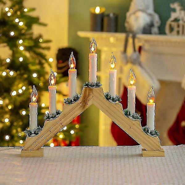 70800 Wooden Christmas Light Bridge / Pine Wood Finish / Features flickering bright orange flames /_bd