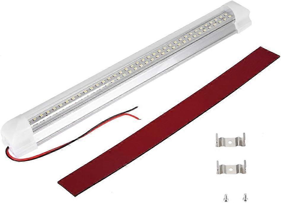The lamp adopts the high-brightness lamp bead SMD 2835, the number of the lamp beads reaches 72. The lamp is provided with a switch, is small and easy to use, and saves space. The input voltage of the lamp is 12-85V, which can be used in automobile, truck, engineering vehicle, agricultural vehicle, display cabinet and other applicable places. The fitting has adhesive, and the screw and the buckle are convenient to install; The red line is connected with the positive electrode and the brown wire is connected with the negative electrode.