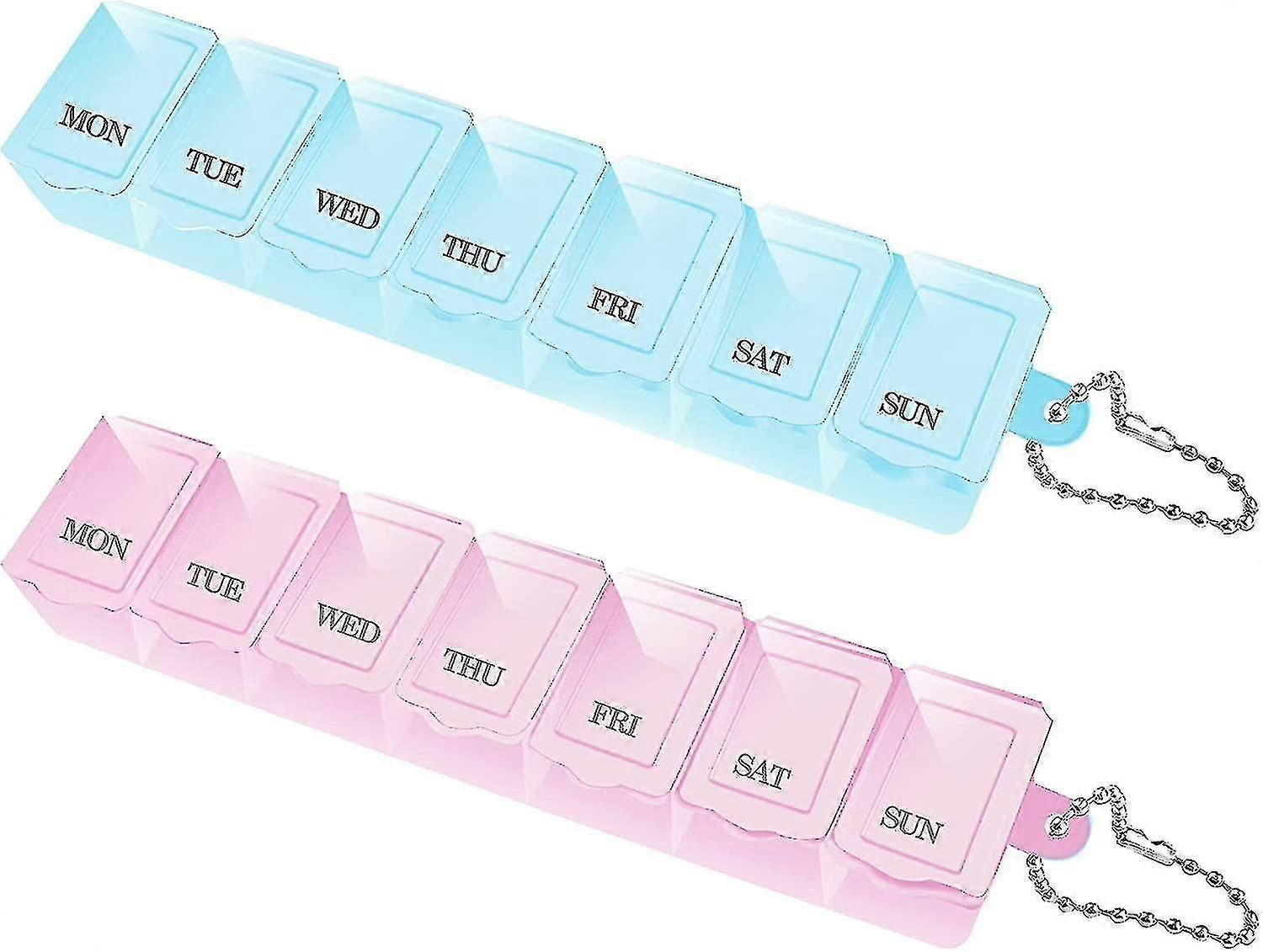 Pill Box 7 Day 2 Times a Day, Portable Pill Box Organiser Pill Case Travel Tablet Box Reminder Pill Dispensers Weekly Pill Storage BoxMaterial:day and night pill case is made of food-grade PP material,without harmness to your body,and very portable for travelingUse:See through what kind of pills in it.pill boxes 7 day 2 times a day save time on searching pills.great for small pills and jewelryApplication:You can put the weekly pill box you need for a week, which is very useful for maintaining daily medication for 7 daysColor: blue+pinkSize: 15*3*2cmQuantity: 2pcs1.As different measuring methods,it will occur 1-3 cm deviation about the items,please ensure that it is okay for you before ordering.2. Because of different monitors and lamplight, the picture may not reflect the actual color of the item, really thank you for your kind understanding.3. Only the above package contents, excluding other products.