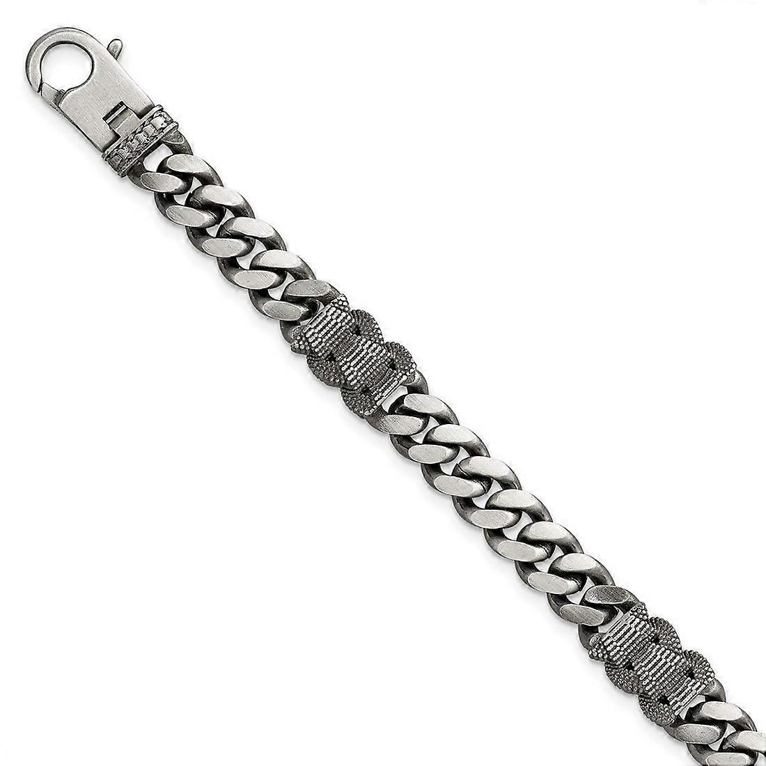 7.2mm 925 Sterling Silver Black Ruthenium Brushed Flat Curb Chain Mens Bracelet 8.5 Inch Link-Bracelet for Men