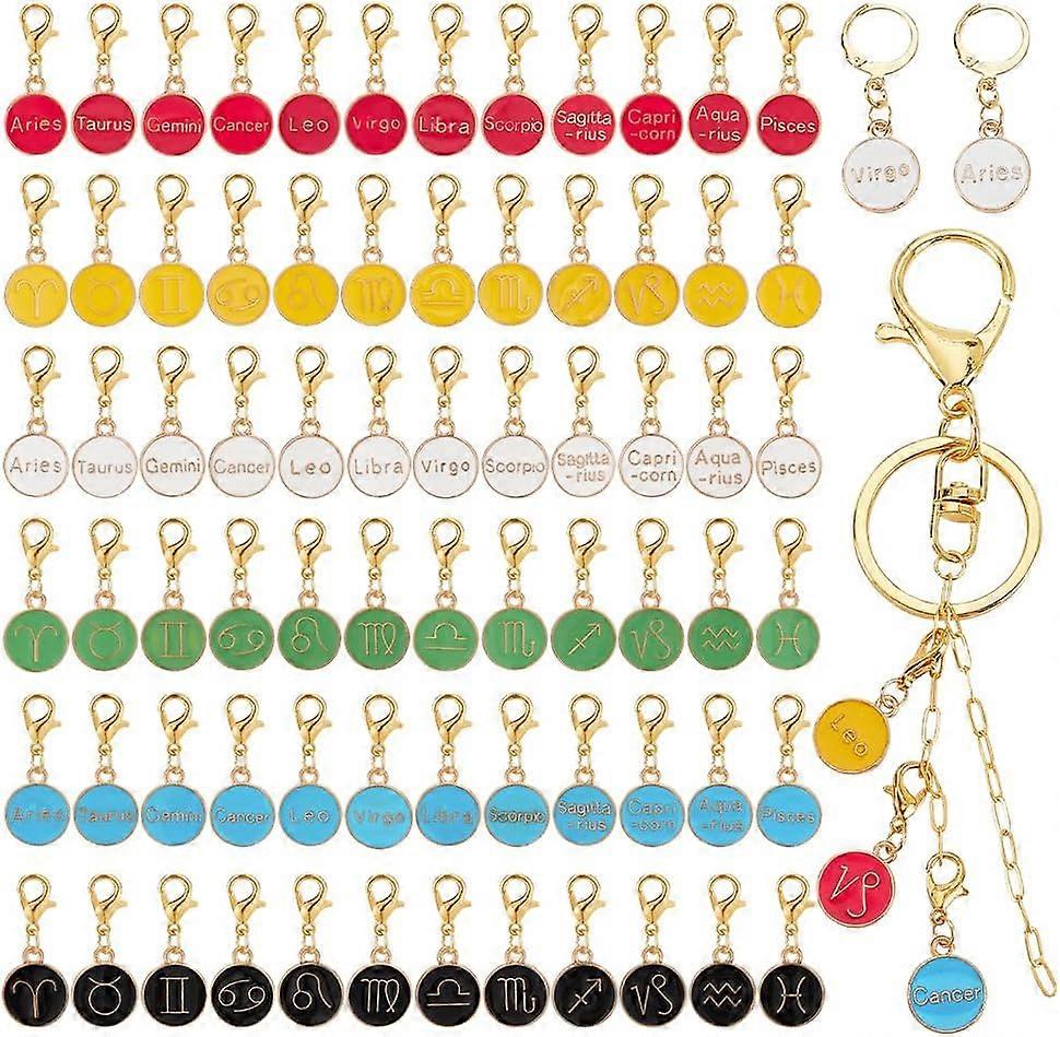 72pcs 12 Constellations Pendants Enamel Constellation Charms with Lobster Claw Clasps Crochet Stitch Markers Zodiac Sign Pendants for Necklace Earring