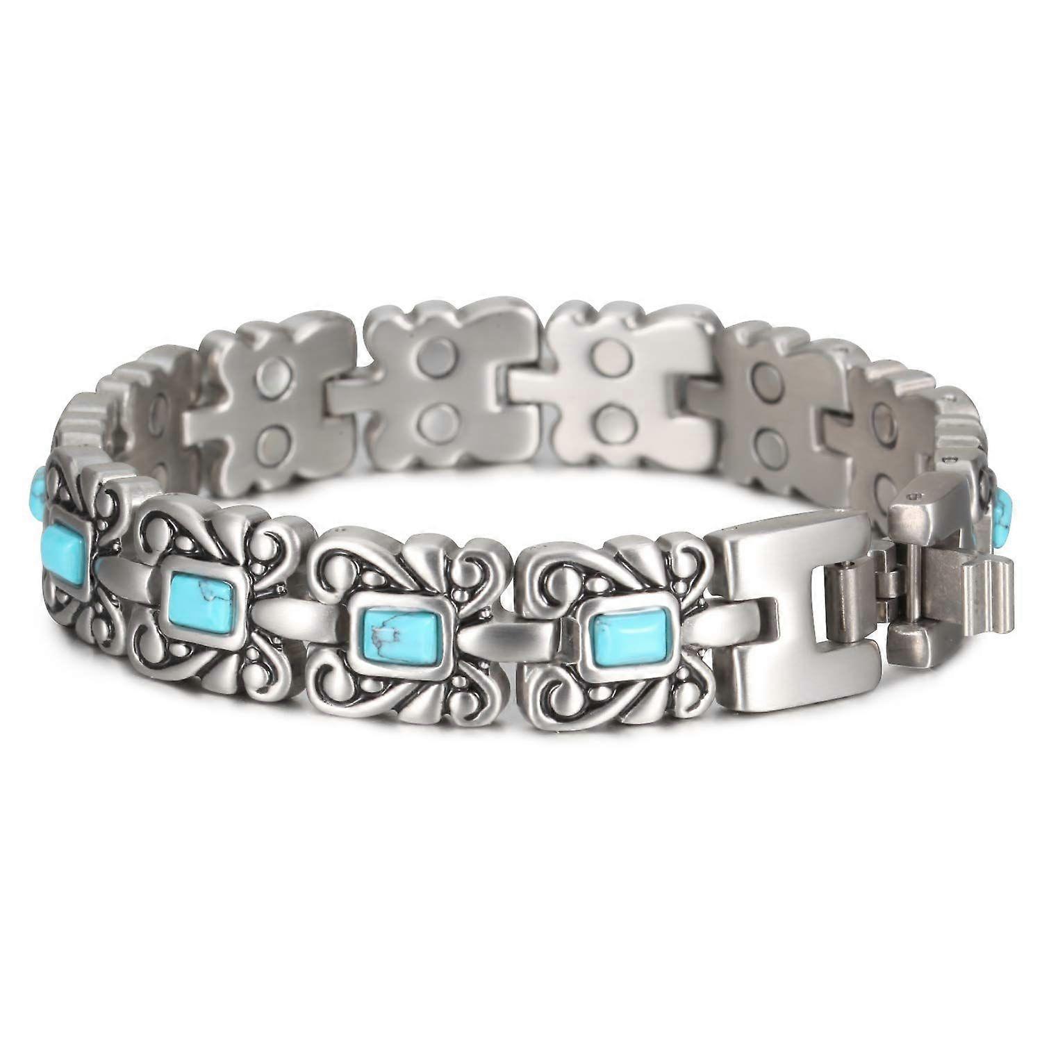 7.3 Inch Vintage Tibetan Silver Blue Turquoise Bracelet Women Magnetic Therapy Bracelets