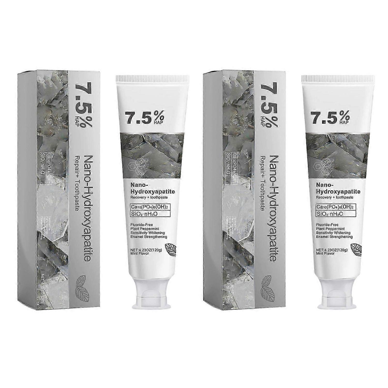 Features:<br> Advanced Enamel Protection with 7.5% Nano-Hydroxyapatite: Toothpaste features a powerful formulas enriched with 7.5% Nano-Hydroxyapatite, effectively restoring and strengthening tooth enamel while protecting your teeth from daily wear and tear.<br> Comprehensive Care for Your Oral Health: Our Premium Toothpaste is designed to repair and protecting tooth enamel, significantly reducing the-risk of cavities and erosions, promoting long-term oral .<br> Efficient and Safe Fluoride-Free Formulas: Enjoy the-benefits of our Toothpaste that offers advanced enamel protection without fluoride, ensuring a safe and effective cleaning experience for your teeth.<br> Daily Essential for Freshness and Strength: Use Toothpaste Nanohydroxide daily to support overall oral hygiene, keeping your teeth strong and your mouth feeling-fresh with regular brushing.<br> Gentle Cleaning for Sensitive Teeth: Our Toothpaste provides a gentle yet thorough clean, making it ideal for those with sensitive teeth, allowing you to maintain comfort without irritation while effectively removing tooth stains.<br> Notice:<br> 1.Actual color may be slightly different from the image due to different light effect<br> 2.Please allow 1-3cm deviation due to manual measurement<br> Net Content: 120ml<br> Package List:<br> 1/2/3pcs 7.5% Nano-Hydroxyapatite Toothpaste