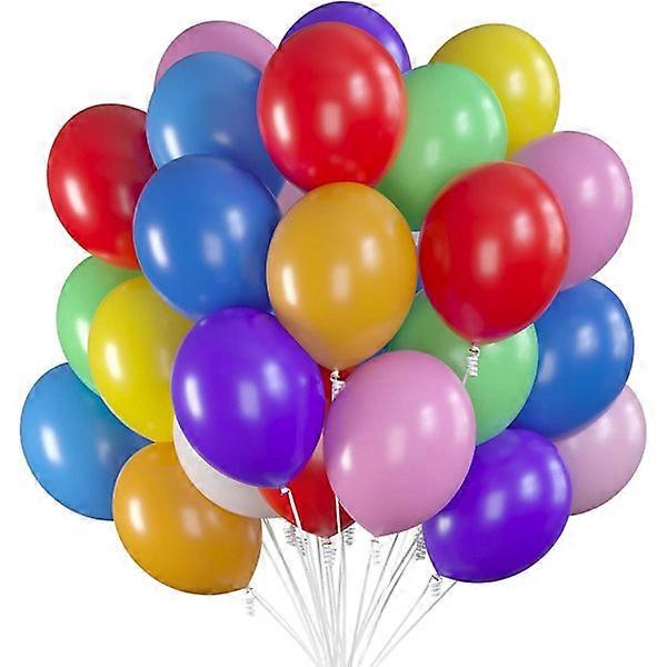 75 Party Balloons 12 inch Assorted Color Balloons with White Ribbon