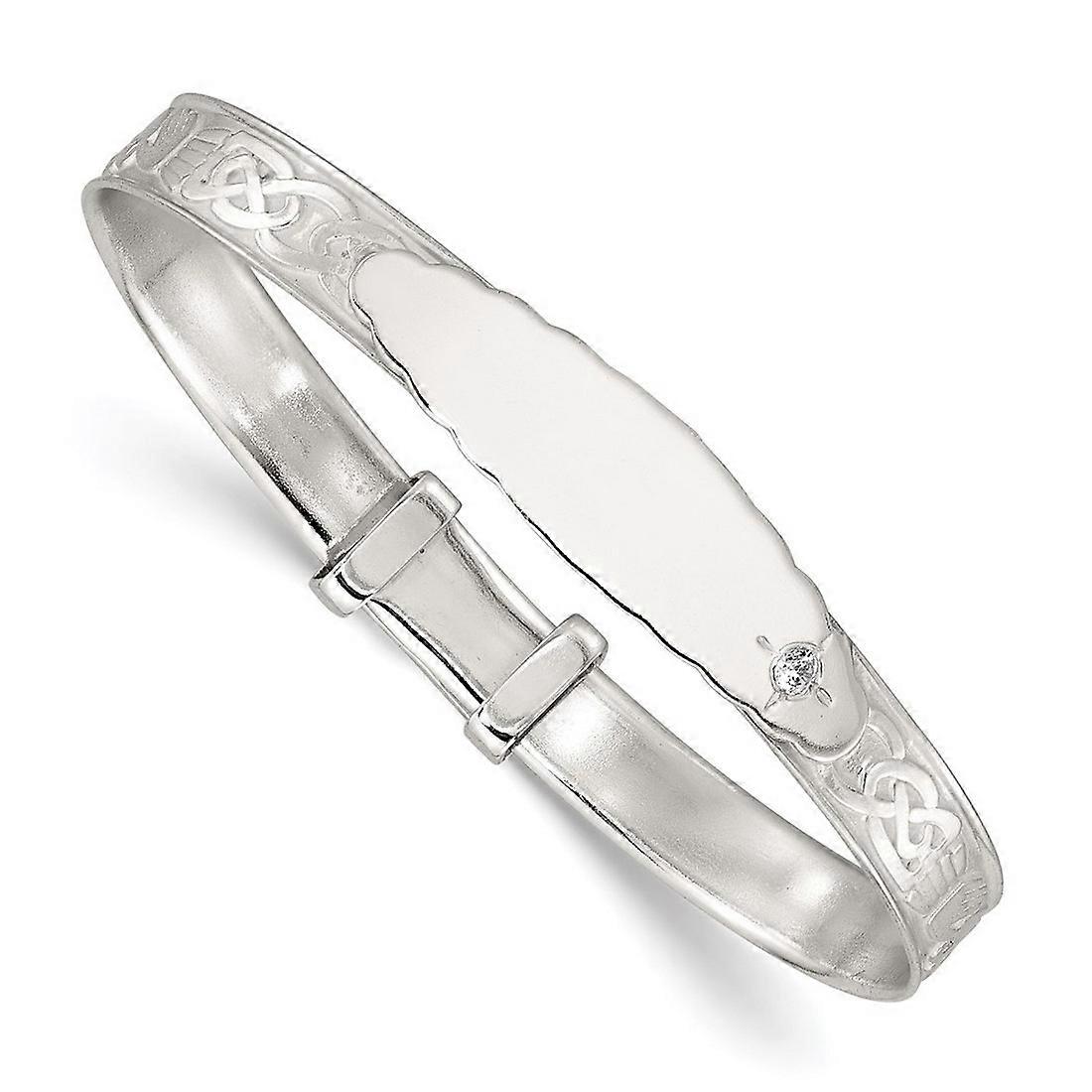7.5mm 925 Sterling Silver Polish Cubic Zirconia Irish Claddagh Celtic Trinity Knot Slip ID Expandable Bangle Bracelet Cu