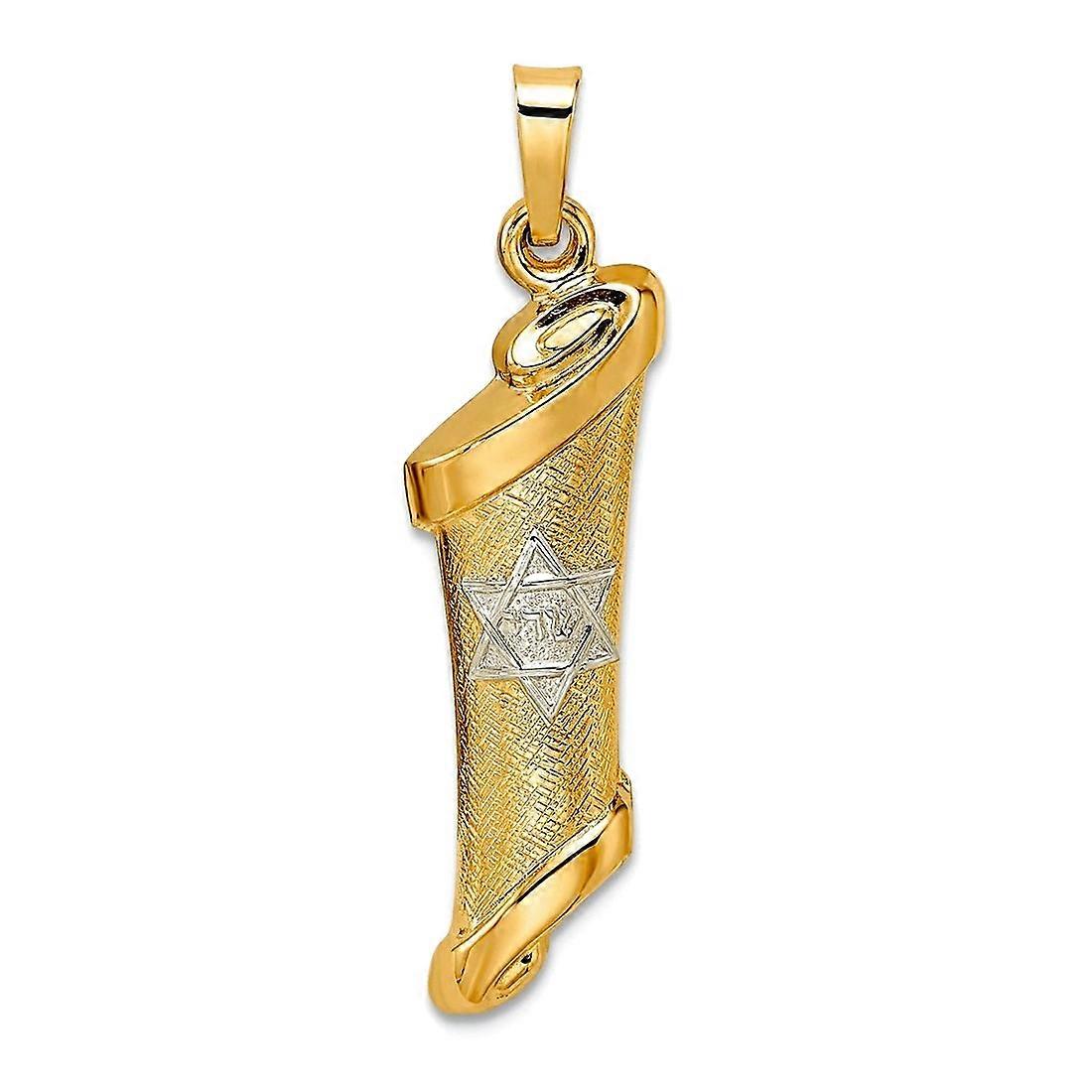 7.67mm 14k Solid Gold Two tone Polished and Textured Hollow Mezuzah Pendant Necklace-Pendant for Women