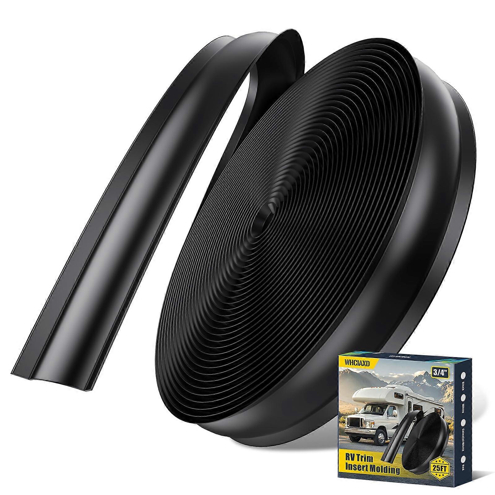 7/8" RV Vinyl Trim Molding, Flexible Weatherproof Strip for RVs, Trailers, Campers, Corner Molding Insert, Black 25FT