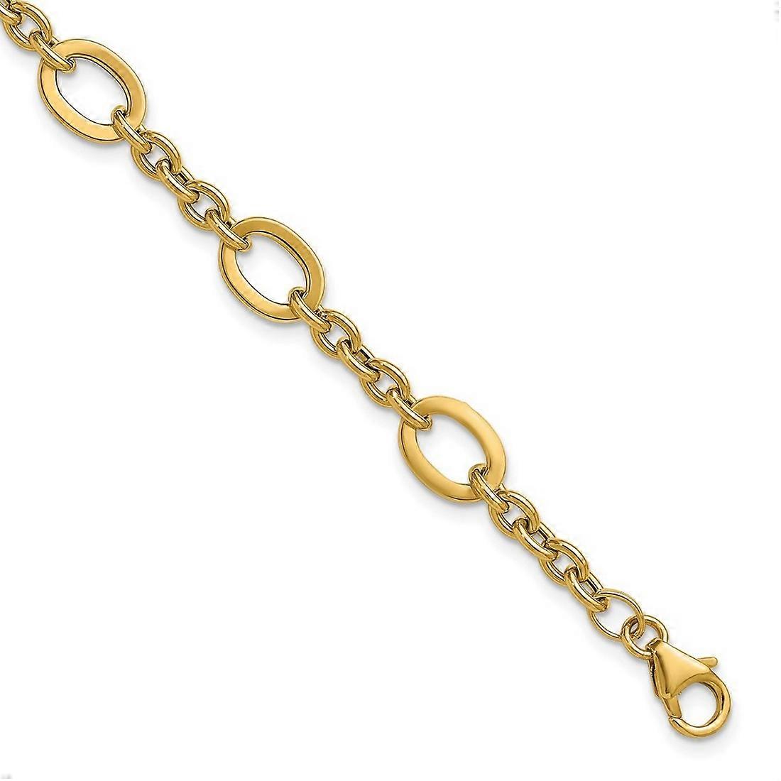 7.85mm 14k Polished Fancy Link Bracelet - 7.75 Inch - 2.8 Grams In 14k Yellow Gold - - Width of Item: 7.85 mm - Length of Item: 7.75 in - Chain Length: 7.75 in - Chain Width: 7.85 mm - Clasp /Connector: Lobster (Fancy) - Finish: Polished - Feature: Semi-Solid - Feature 2: Flexible -