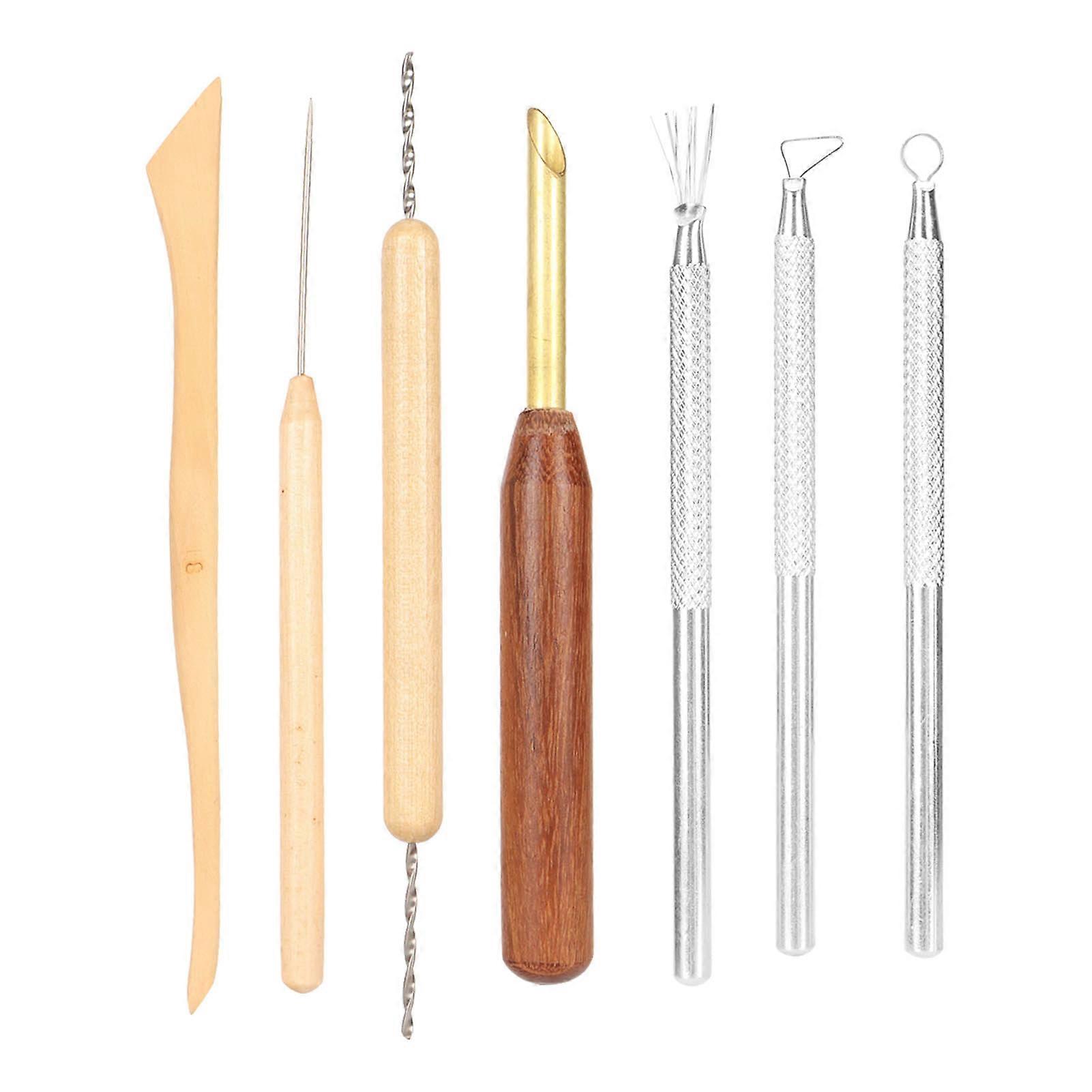 7Pcs Clay Sculpting Tools Brass Stainless Steel Flexible Wooden Handle Modeling Clay Tools for Carving Craft DIY