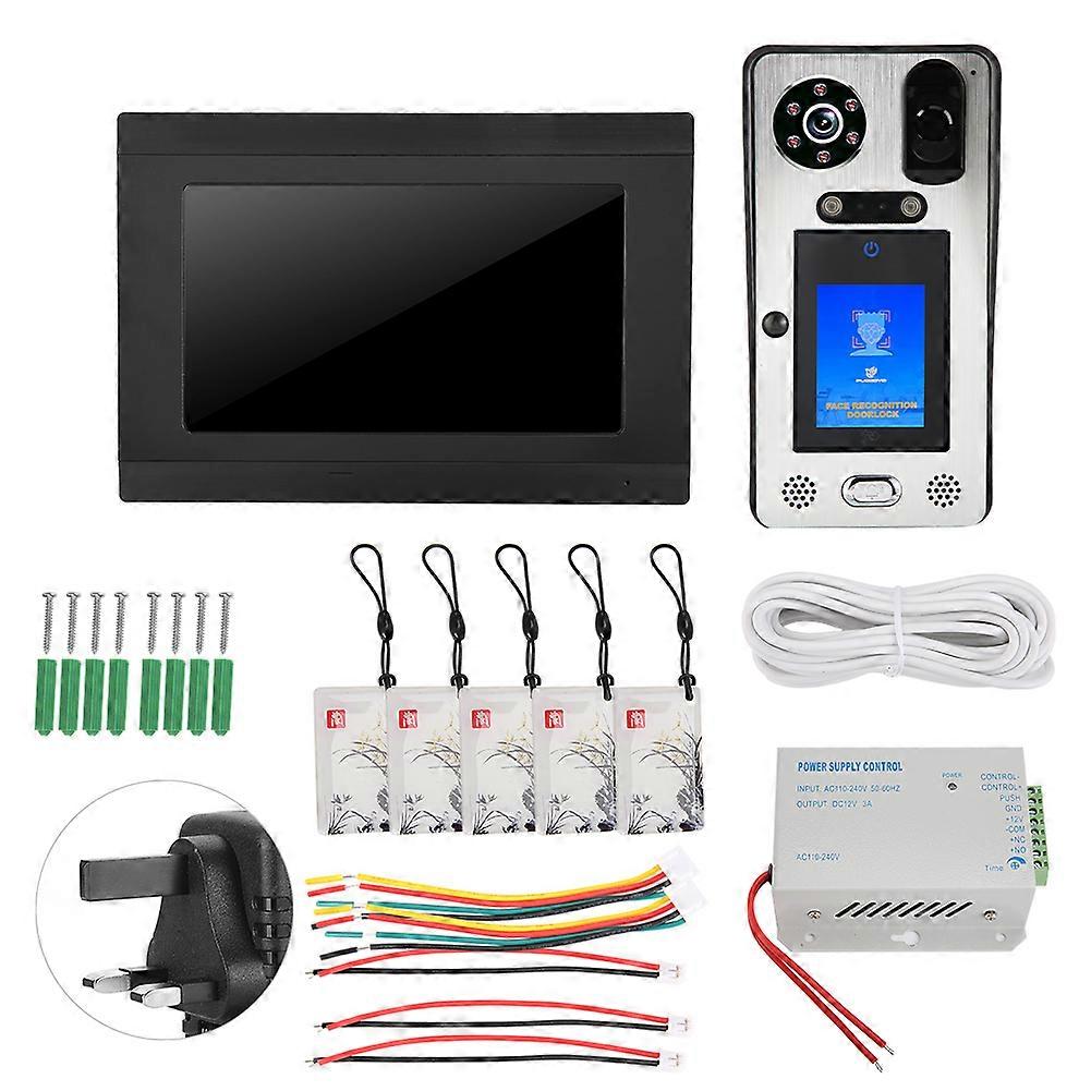 1Simple installation by yourself with the adapter and the cable that we provide in this kit, the outdoor unit can be connected to the indoor monitor with 4P cable. 2When the indoor monitor is connected to your wireless wifi router, you can connect the mobile phone to the monitor inside, then the mobile phone can also record video or open the door, etc. 3Widely used, suitable for villa, apartment, houses, hotels, offices and public buildings, etc. 4The indoor monitor uses multipoint capacitance touch screen, stable and easy to operate. 57in high-definition digital LCD monitor, with photo taking, visitor records and calendar function. 6The indoor monitor can take the photo manually or automatically, maximum to support the 32G memory card. 7Indoor monitor with monitor, intercom, unlock, hands-free and do not disturb function, practical to use 8The indoor monitor can connect 8 users of mobile phone applications, support for IOS / for Android System, then the mobile phone can view and unlock. 9The outdoor unit adopts 2.8in touch screen, high sensitivity. Weatherproof, antioxidant, wear-resistant aluminum panel, with waterproof cover, durable to use. 101080P camera, with IR-CUT, provides clear pictures, gives you great using experience. 11Outdoor unit supports 100pcs face recognition, 100pcs fingerprints, 100pcs palmprints 100pcs IC User card, 100 group passwords indoor monitor and mobile phone application unlock.