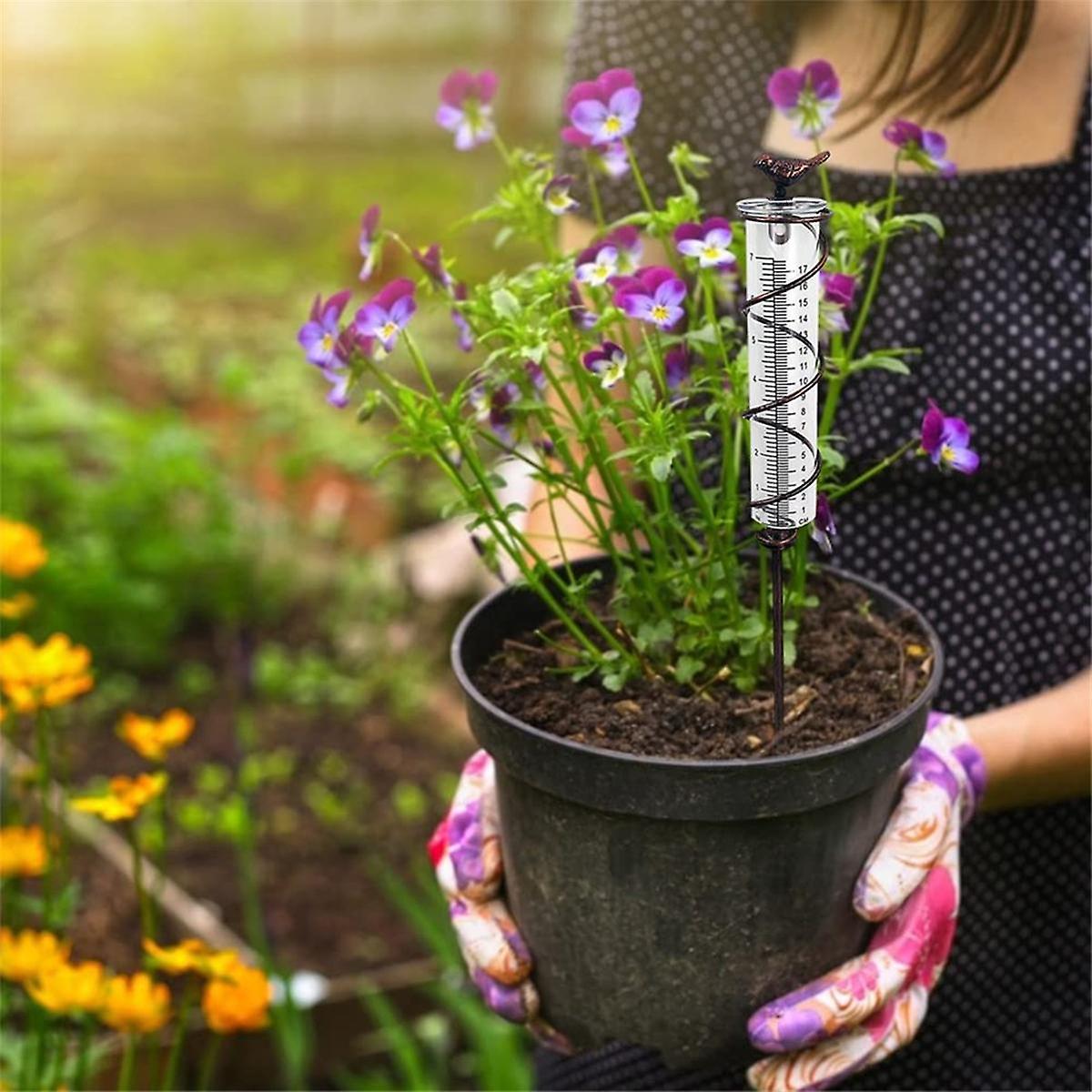 7L Capacity Glass Spiral Rain Gauge,Cast Iron Bird Hanging Rain Gauge,Garden Rain Water Meter Measuring with Metal Frame