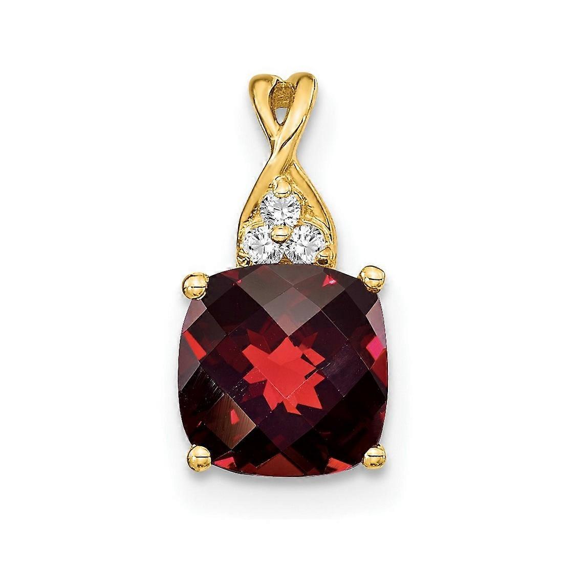 7mm 14k Solid Yellow Gold Checkerboard Garnet and Diamond Pendant Necklace-Pendant for Women