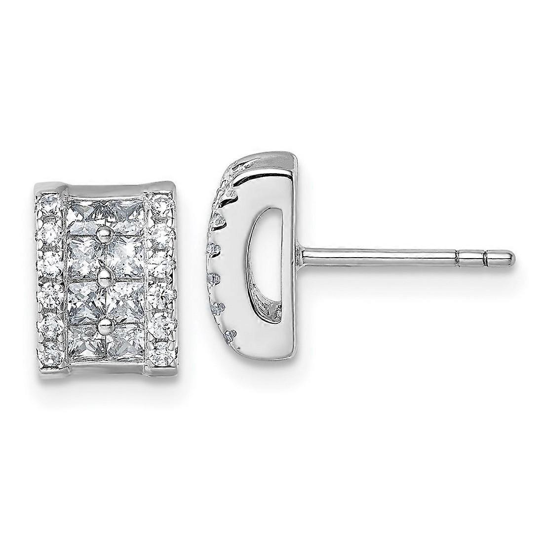 7mm 925 Sterling Silver Rhodium Plated Cubic Zirconia Rectangle Post Earrings 9.7x7mm Wide Stud Earring for Women