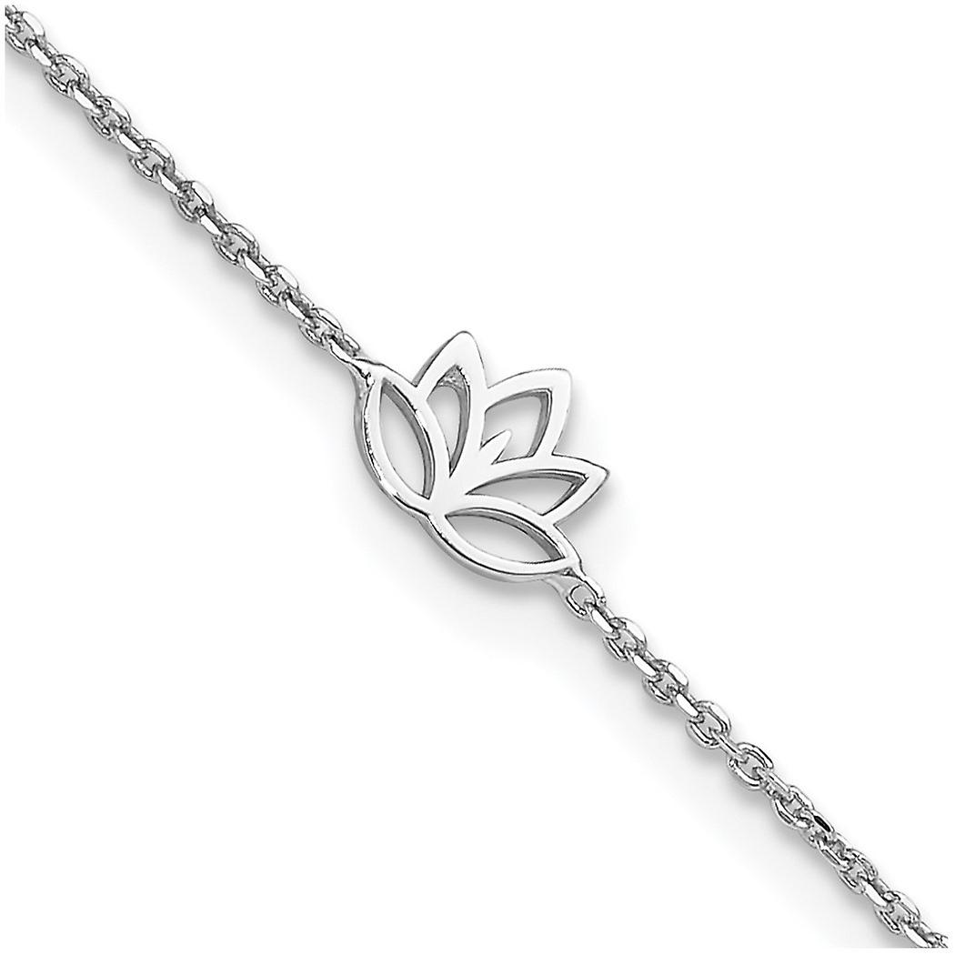 7mm 925 Sterling Silver Rhodium Plated Louts Flower Plus 1in Extension Anklet 9 Inch-Anklet for Women