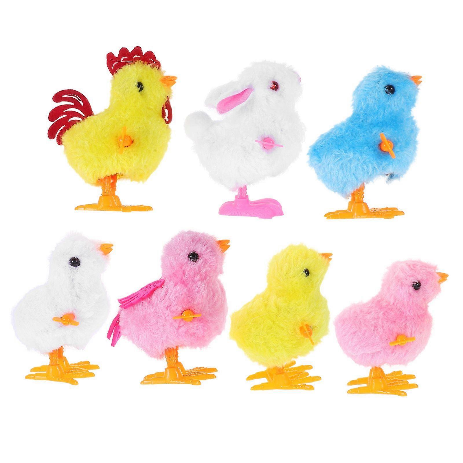 Description Our wind-up chick toy is designed to bring joy and laughter to children and adults alike. With its realistic fluffy exterior, this charming toy mimics the appearance of a real chick. Simply wind it up, and watch it hop around energetically, making it a delightful addition to any playtime or festive occasion. Features -Color:Assorted Color -Material:Plush, plastic -Size:9.00X8.00X6.00cm/3.54X3.14X2.36in -Interactive fun: wind up the toy and watch the chick jump, providing endless entertainment for kids -Realistic texture: made with soft, plush material that feels realistic and comfortable to touch -Skill development: helps children develop fine motor skills and observational abilities through play -Adorable design: the cute chick design with bright colors captures children's attention and imagination -Safe and soft: meets children's toy safety standards, ensuring peace of mind for parentsPackage list: 7 x wind up chick