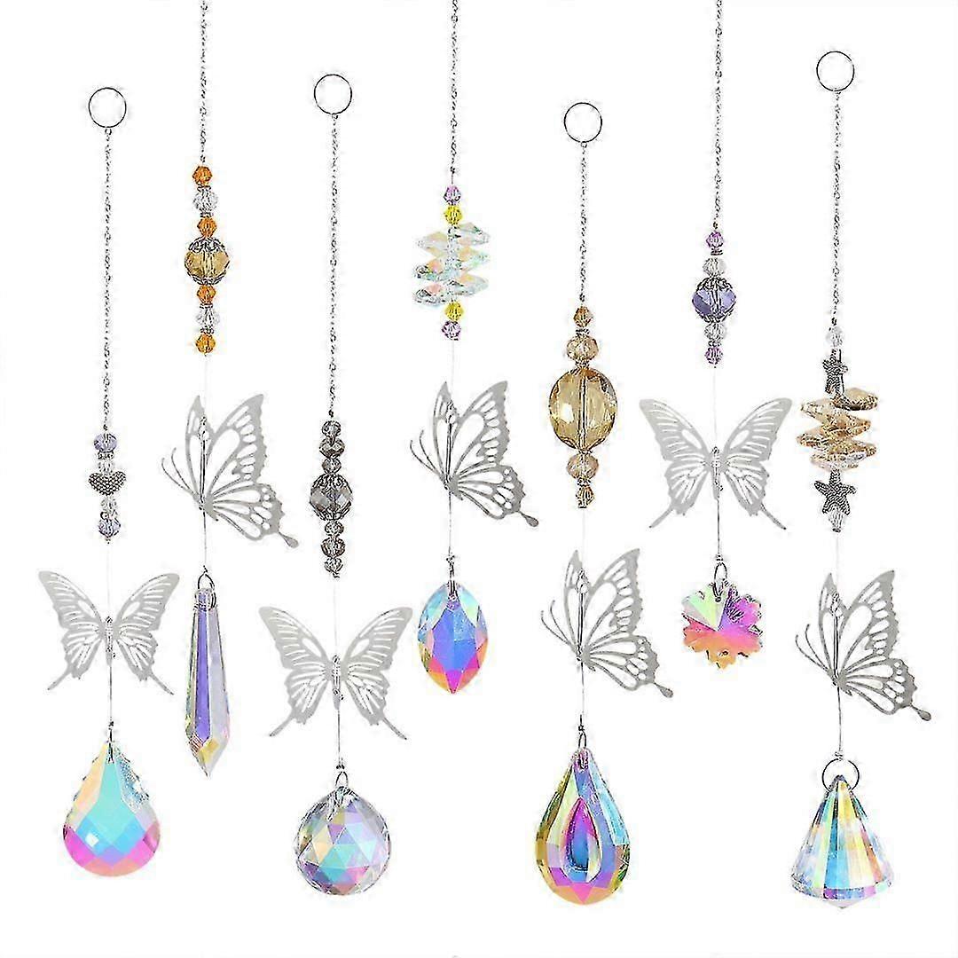 7PCS Crystals Suncatcher Butterfly Sun Catchers Colorful Hummingbird Wall Hanging Tree Window Prism Ornament